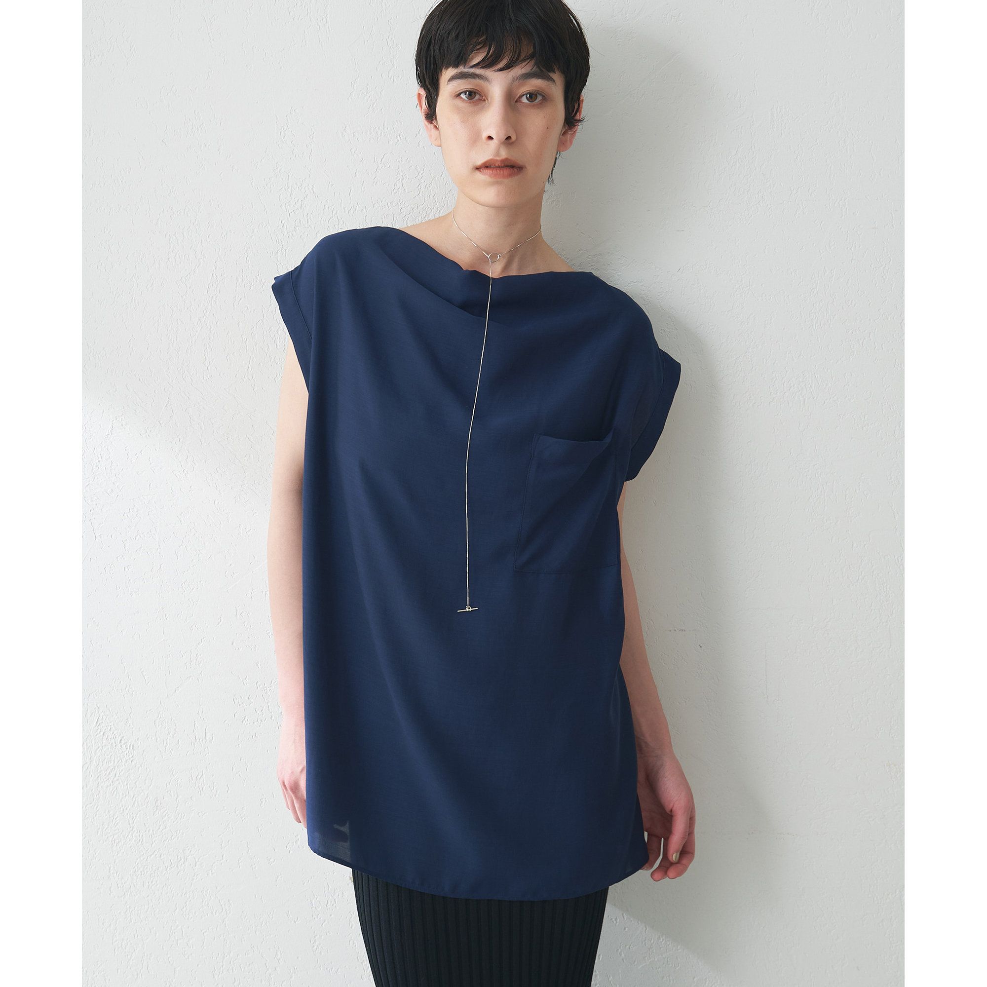 【2025SS】ラフなのにレディ感を忘れないサテンブラウス■ゆったりとしたシルエットがリラクシーなノースリーブブラウス。■素材の質感により生み出されるドレープと、ワッシャーの洗いざらしたような風合いが軽やかな一枚。■胸ポケットやTシャツライクなフレンチスリーブなど、カジュアルな着こなしにもマッチするデザイン。■汗ばむ季節にうれしいゆとりのあるサイズ感で着心地も抜群。■少し長めの着丈はトップスインでもアウトでもバランスよく、様々なボトムと好相性。■女性らしいツヤのある風合いも美しく、さらりと一枚で着ても着映えるアイテム。【COLOR】オフホワイト:クリーンな印象を与えるオフホワイト。ベージュ:女性らしさのあるナチュラルなベージュ。ネイビー:華やかで存在感のある大人のネイビー。【MATERIAL】天然繊維の風合いに微光沢と軽いドレープ性のある薄手のサテン素材。----------------------------------------------------洗濯方法:手洗い可透け感:あり(オフホワイト)裏地:なし伸縮性:なし光沢感:あり----------------------------------------------------【注意事項】・画像の商品はサンプルです。実際の商品と仕様、加工が若干異なる場合があります。また 、パソコンやスマートフォンのモニター環境などにより、色味が違って見える場合がございます。・店頭及び屋外での撮影画像は、光の当たり具合で色味が違って見える場合があります。商品の色味は、スタジオ撮影の画像をご参照ください。・入荷状況により、お届け予定が前後する場合があります。・お客様への発送が店頭販売より遅れる場合があります。・追加生産商品は、一部の店舗、通販で販売中の場合があります。予めご了承下さい。