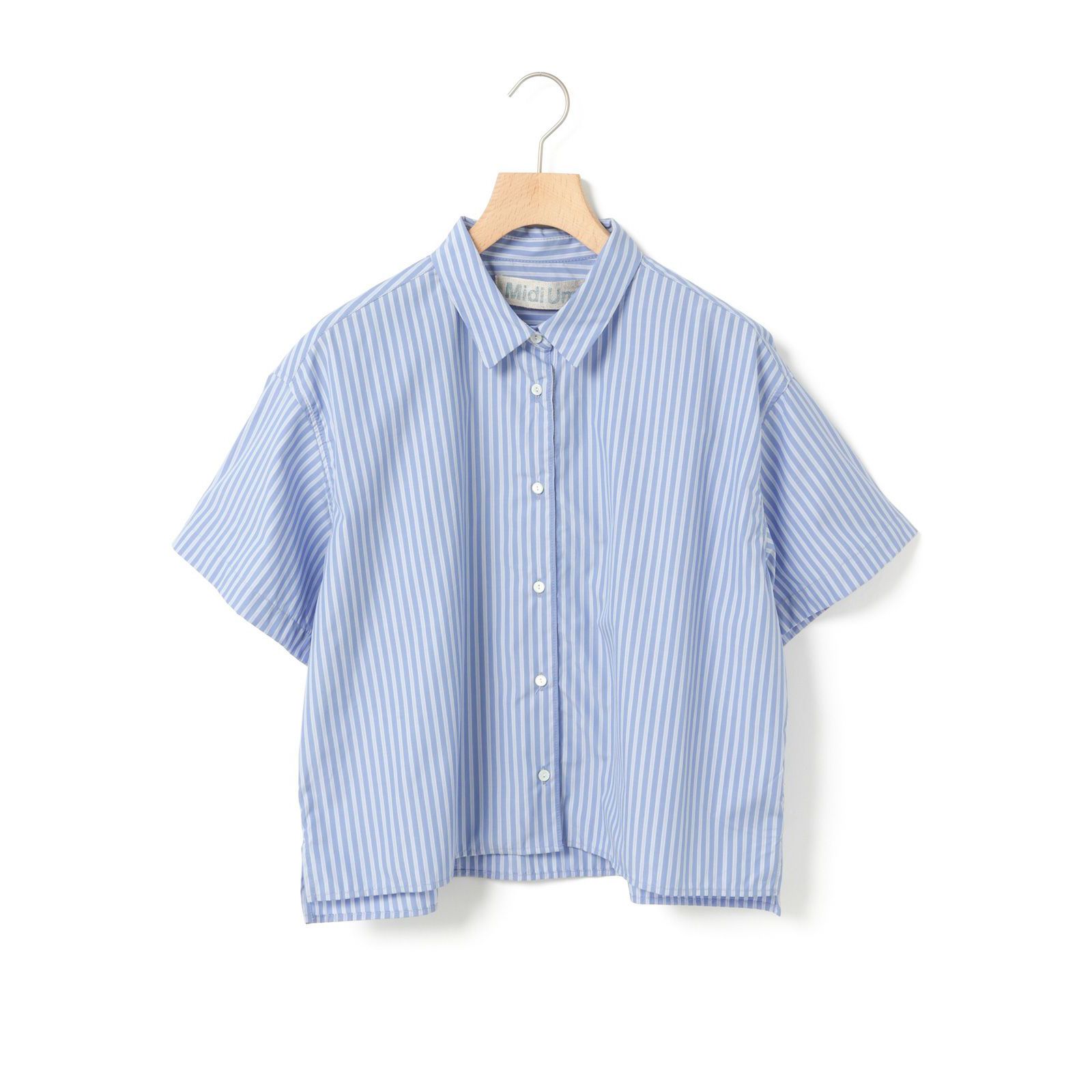 タイプライターシャツのシリーズとして2-739869Aハーフスリーブショートシャツ(無地)と2-739874/ハーフスリーブ柄ワイドロングシャツも展開。ボックスシルエットのコンパクトなシャツで後ろの着丈はさりげなく腰周りをカバーしてくれる長さが特徴。ボリュームのあるボトムスと相性抜群です。色柄の異なる夏らしい爽やかな色展開が魅力の1枚です。