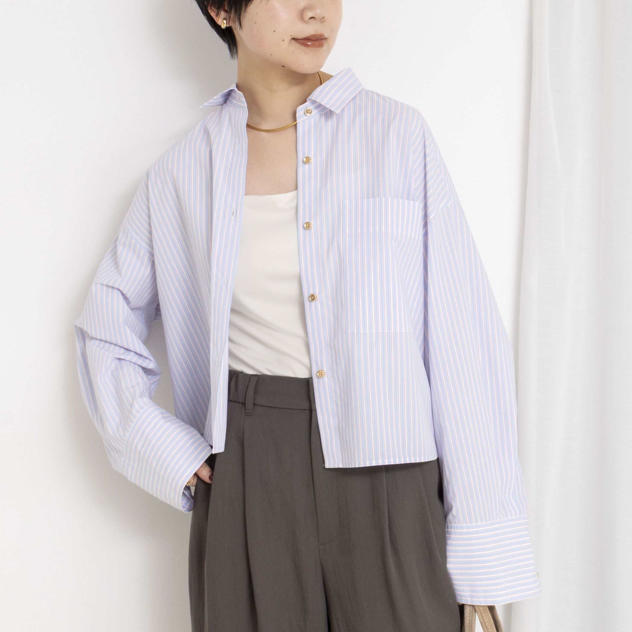 ◇26SS◇2nd NOLLEY'S◆Point・安定した人気を誇る『MY STANDARD ショートシャツ』を、'26SSもNEWデザインでアップデート・無地は'24SSより継続採用し、ご好評いただいているコットンポリエステルタイプライターを使用・洗濯後のシワに強く、シワの回復性にも優れた実用性の高さが魅力・ストライプもイージーケア加工を施したコットンポリエステル素材・いずれも程よいハリと発色の良さがあり、上品さと快適な着心地を両立・今季は、ショート丈とのバランスが新鮮な太めのストレートスリーブとゴールドボタンがデザインポイント・袖口は幅広カフスで、折り返すとシェルボタンに切り替わりさりげない表情変化を楽しめる一枚・左袖口には2nd Nolley'sのアイコン「2」の刺繍をプラス・シーズンレスで活躍●お取扱い上のご注意●末永くご愛用頂くために、アテンションタグを必ずご確認の上、着用又はお取り扱い下さい。気になる商品は、お気に入り登録がオススメです!クーポン情報、入荷情報が、通知されるようになります。※手洗い可※店頭及び屋外での撮影画像は、光の当たり具合で色味が違って見える場合があります。商品の色味は、スタジオ撮影の画像をご参照下さい。※商品画像に関しては出来る限り忠実に表示出来るよう努めておりますが、お客様がご利用のモニターの設定及び特性により、実際の商品と比較し色味に若干の誤差が生じる場合があります。※画像の商品はサンプルとなりますので実際の商品と仕様、加工、サイズが若干異なる場合がございます。