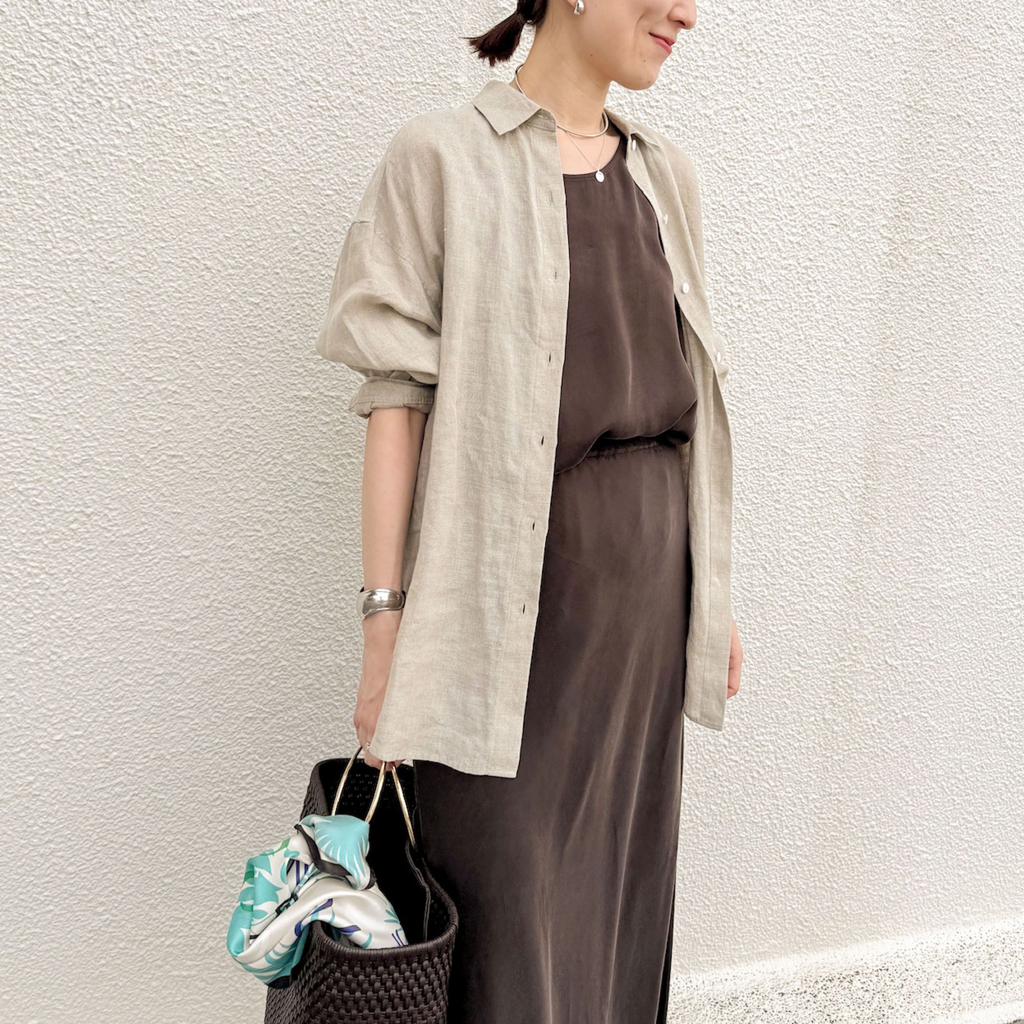 ◇25SS◇2nd NOLLEYS◆Point・夏を快適に過ごせる、定番人気のリネンシャツ・生地の段階で洗いをかけ、適度なハリコシ感を残しつつ、柔らかく仕上げた細番手のリネンを使用・左身頃の釦に裾を留めて、カシュクール風にもアレンジ可能・1枚でも羽織りとしてもマルチに活躍する便利アイテム・同シリーズのパンツとセットアップ着用も可能※ダークブラウンは【WEB STAFF恵☆別注カラー】※製品洗いのため、色により若干サイズにバラつきがございますのでご了承ください。≪同シリーズ≫・リネンワイドパンツ(5-0036-2-09-008)・リネン衿フリルブラウス(5-0036-2-01-009)・リネンワンピース(5-0036-2-07-008)●お取扱い上のご注意●末永くご愛用頂くために、アテンションタグを必ずご確認の上、着用又はお取り扱い下さい。気になる商品は、お気に入り登録がオススメです!クーポン情報、入荷情報が、通知されるようになります。※手洗い可※店頭及び屋外での撮影画像は、光の当たり具合で色味が違って見える場合があります。商品の色味は、スタジオ撮影の画像をご参照下さい。※商品画像に関しては出来る限り忠実に表示出来るよう努めておりますが、お客様がご利用のモニターの設定及び特性により、実際の商品と比較し色味に若干の誤差が生じる場合があります。※画像の商品はサンプルとなりますので実際の商品と仕様、加工、サイズが若干異なる場合がございます。