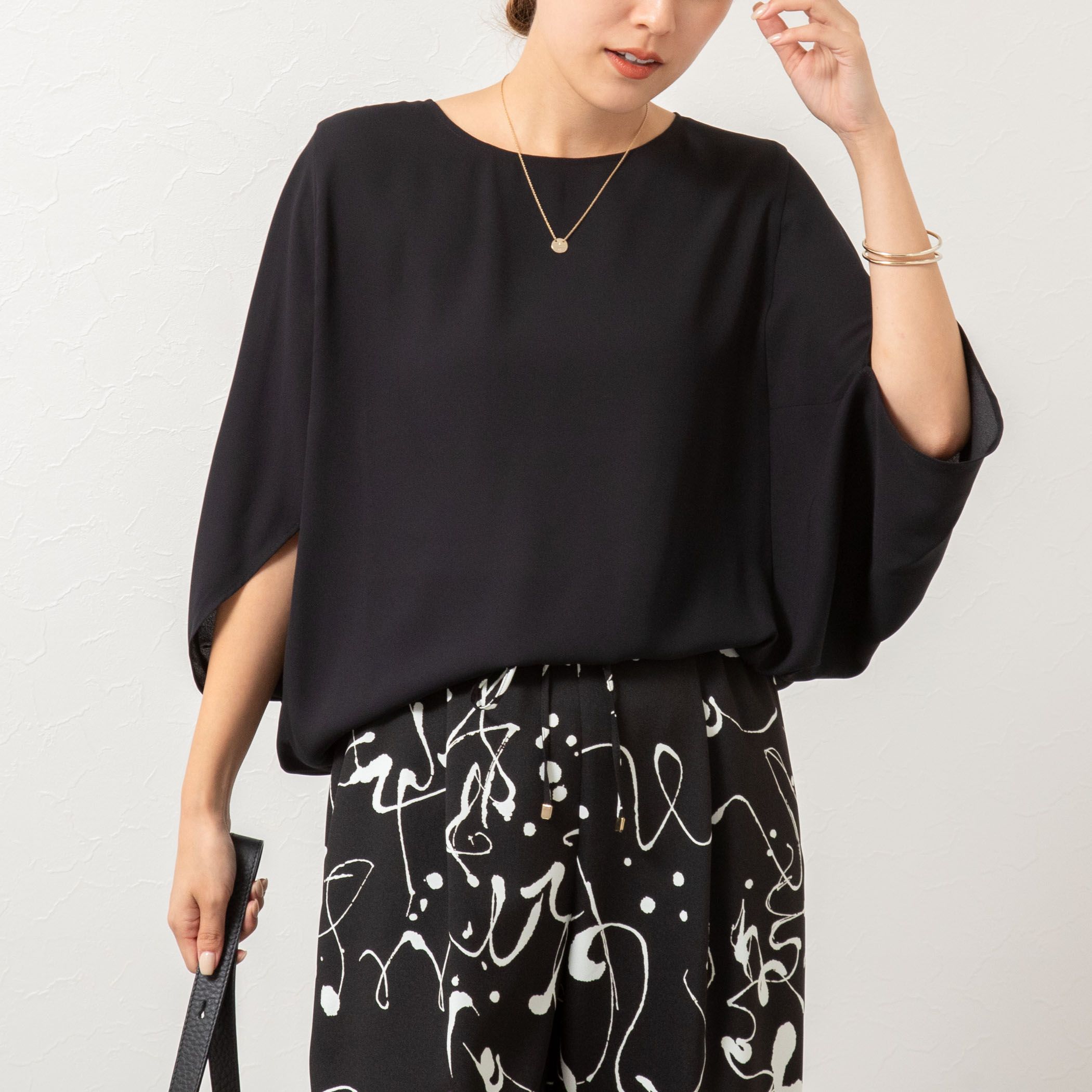 ◇25AW◇NOLLEYS◆Point・ドルマンスリーブとコクーンシルエットが新鮮なデザインのブラウス・肘あたりまである袖丈・ゆったりシルエットで気になる部分の体型カバーにも◎・サラッとした風合いで晩夏の暑い時期にも最適な素材・モノトーンの落ち着いた柄で、ボトムにも合わせやすい1枚・通勤/行事/デイリーまで、幅広いスタイリング・シーンに活躍する万能アイテム●お取扱い上のご注意●末永くご愛用頂くために、アテンションタグを必ずご確認の上、着用又はお取り扱い下さい。気になる商品は、お気に入り登録がオススメです!クーポン情報、入荷情報が、通知されるようになります。※手洗い可※店頭及び屋外での撮影画像は、光の当たり具合で色味が違って見える場合があります。商品の色味は、スタジオ撮影の画像をご参照下さい。※商品画像に関しては出来る限り忠実に表示出来るよう努めておりますが、お客様がご利用のモニターの設定及び特性により、実際の商品と比較し色味に若干の誤差が生じる場合があります。※画像の商品はサンプルとなりますので実際の商品と仕様、加工、サイズが若干異なる場合がございます。