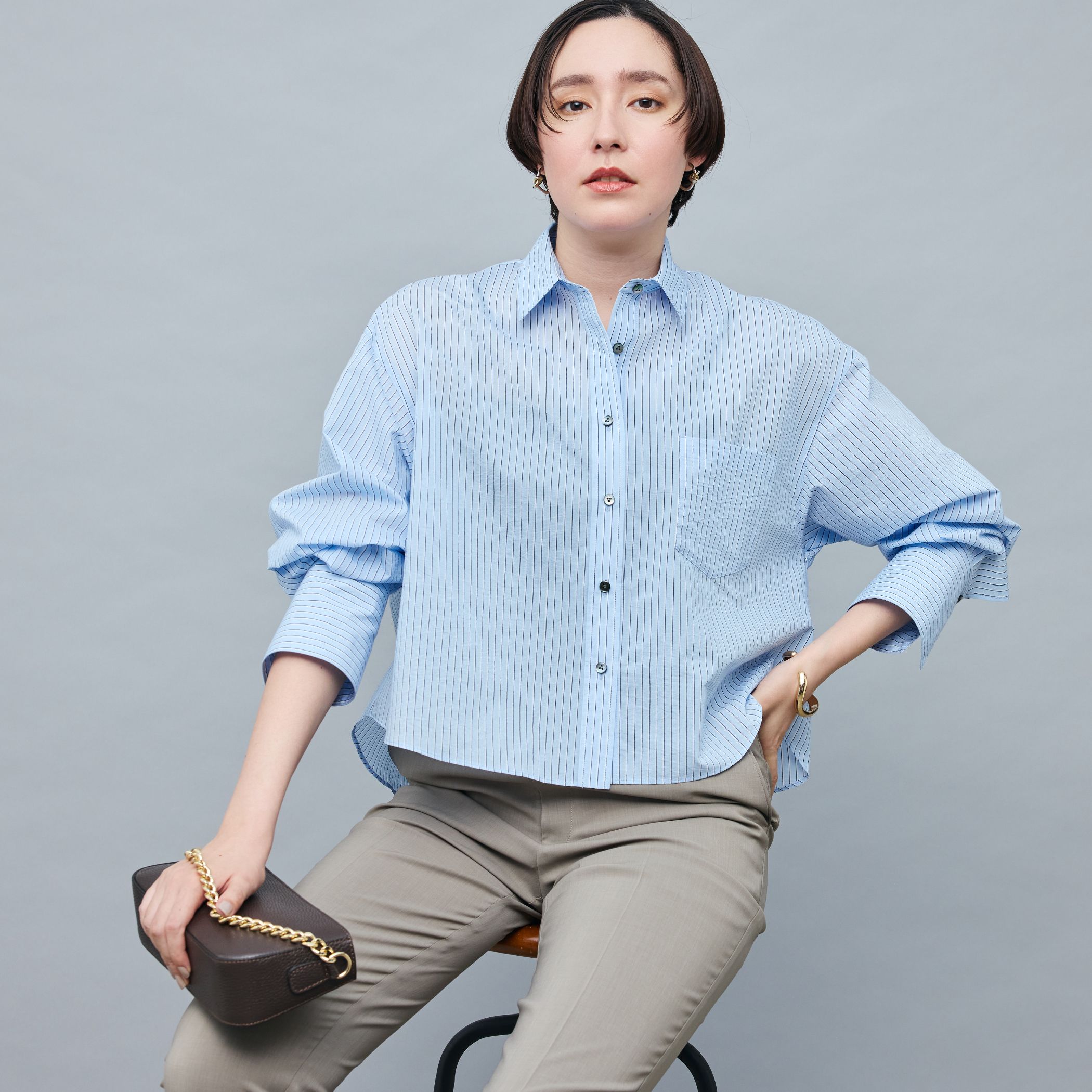 ◇25AW◇NOLLEYS sophi◆Point・大人気エアリーストライプシャツのショート丈バージョン・空気のように軽い着心地で、ハリ感がクリーンな印象の素材感・オールシーズン着回せる便利な1枚・肌離れがよく、暑い時期にも着用しやすいのも魅力・シワ加工が施された素材のため、シワが気になりにくく、イージーケア◎・程よくリラックス感のある雰囲気で、こなれ感のあるシャツ・ワイドパンツやスカートコーデに、バランスがとりやすい丈感●お取扱い上のご注意●末永くご愛用頂くために、アテンションタグを必ずご確認の上、着用又はお取り扱い下さい。気になる商品は、お気に入り登録がオススメです!クーポン情報、入荷情報が、通知されるようになります。※手洗い可※店頭及び屋外での撮影画像は、光の当たり具合で色味が違って見える場合があります。商品の色味は、スタジオ撮影の画像をご参照下さい。※商品画像に関しては出来る限り忠実に表示出来るよう努めておりますが、お客様がご利用のモニターの設定及び特性により、実際の商品と比較し色味に若干の誤差が生じる場合があります。※画像の商品はサンプルとなりますので実際の商品と仕様、加工、サイズが若干異なる場合がございます。