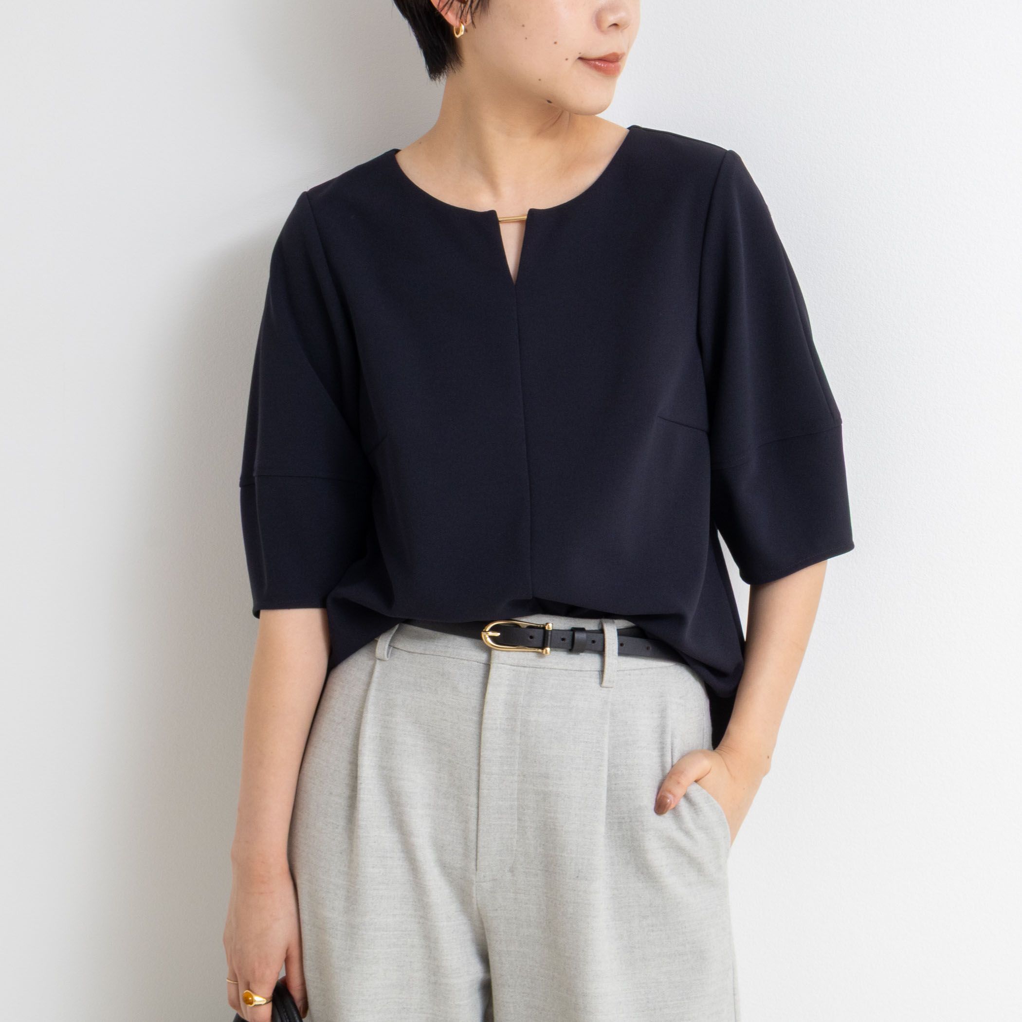 ◇25AW◇NOLLEYS sophi◆Point・ジョーゼット組織のカットソー素材を使用した5分袖ブラウス・きれいめな雰囲気でありながら、ジャージ素材で、「楽してきちんと」を叶えてくれるイージーなセットアップシリーズ・接触冷感/防シワ/紫外線防止機能付きの高機能素材・フロントのメタルパーツがさりげないポイント・ふんわりとした袖が程よい甘さをプラス・同シリーズのパンツ、スカートとセットで、学校行事や通勤などにおすすめ≪同シリーズ≫・ノーカラージャケット(5-0030-5-05-014)・タイトスカート(5-0030-5-06-014)・テーパードパンツ(5-0030-5-09-014)●お取扱い上のご注意●末永くご愛用頂くために、アテンションタグを必ずご確認の上、着用又はお取り扱い下さい。気になる商品は、お気に入り登録がオススメです!クーポン情報、入荷情報が、通知されるようになります。※手洗い可※店頭及び屋外での撮影画像は、光の当たり具合で色味が違って見える場合があります。商品の色味は、スタジオ撮影の画像をご参照下さい。※商品画像に関しては出来る限り忠実に表示出来るよう努めておりますが、お客様がご利用のモニターの設定及び特性により、実際の商品と比較し色味に若干の誤差が生じる場合があります。※画像の商品はサンプルとなりますので実際の商品と仕様、加工、サイズが若干異なる場合がございます。
