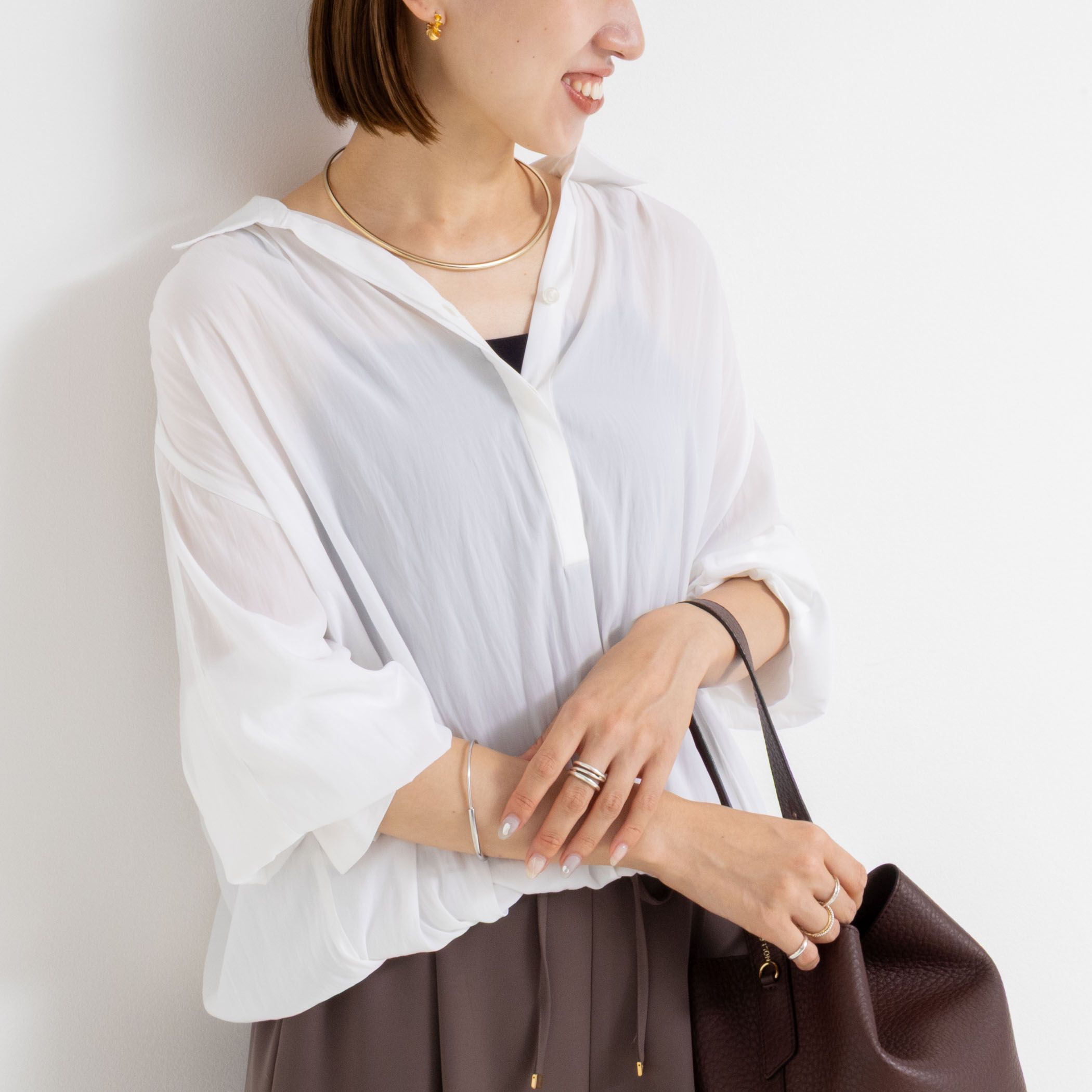 ◇25SS◇NOLLEYS sophi◆Point・程よい透け感の素材を使用したシアーローンシャツ・上品な光沢と軽やかな素材感で、春らしい季節感あふれるアイテム・程よくゆとりのあるサイジングで、きちんと感もありながら、抜け感のあるシルエット・内側のボタンを留めるとボトムにインしたようにも着こなせる2WAY仕様・オンオフ兼用で幅広く活躍するアイテム・同素材のスカート(5-0030-2-06-011)とセットアップ着用も可能●お取扱い上のご注意●末永くご愛用頂くために、アテンションタグを必ずご確認の上、着用又はお取り扱い下さい。気になる商品は、お気に入り登録がオススメです!クーポン情報、入荷情報が、通知されるようになります。※手洗い可※店頭及び屋外での撮影画像は、光の当たり具合で色味が違って見える場合があります。商品の色味は、スタジオ撮影の画像をご参照下さい。※商品画像に関しては出来る限り忠実に表示出来るよう努めておりますが、お客様がご利用のモニターの設定及び特性により、実際の商品と比較し色味に若干の誤差が生じる場合があります。※画像の商品はサンプルとなりますので実際の商品と仕様、加工、サイズが若干異なる場合がございます。