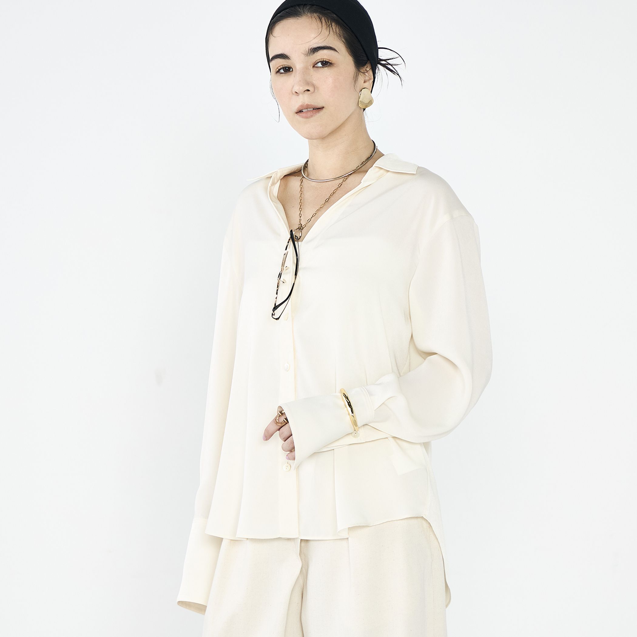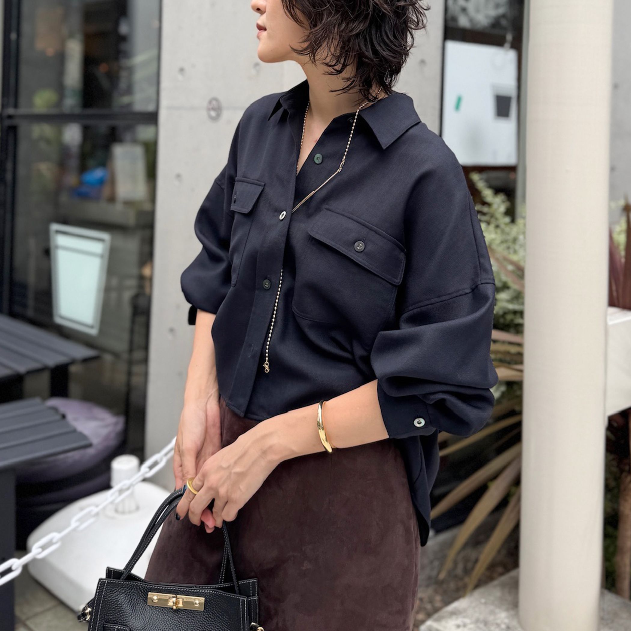◇25AW◇NOLLEYS sophi◆Point・スエードのような風合いのサテンシャツ・表面がやや起毛しており、季節らしい温かみのあるサテン素材・ツヤ感が少ないので、仕事やデイリーでも着用しやすい一枚・タートルニットを中に重ねたり、ニットビスチェを重ねたトレンド感のある着方もおすすめ・オーバーサイズ過ぎず、縦に落ちる程よくすっきりしたシルエット・手洗い可能●お取扱い上のご注意●末永くご愛用頂くために、アテンションタグを必ずご確認の上、着用又はお取り扱い下さい。気になる商品は、お気に入り登録がオススメです!クーポン情報、入荷情報が、通知されるようになります。※店頭及び屋外での撮影画像は、光の当たり具合で色味が違って見える場合があります。商品の色味は、スタジオ撮影の画像をご参照下さい。※商品画像に関しては出来る限り忠実に表示出来るよう努めておりますが、お客様がご利用のモニターの設定及び特性により、実際の商品と比較し色味に若干の誤差が生じる場合があります。※画像の商品はサンプルとなりますので実際の商品と仕様、加工、サイズが若干異なる場合がございます。