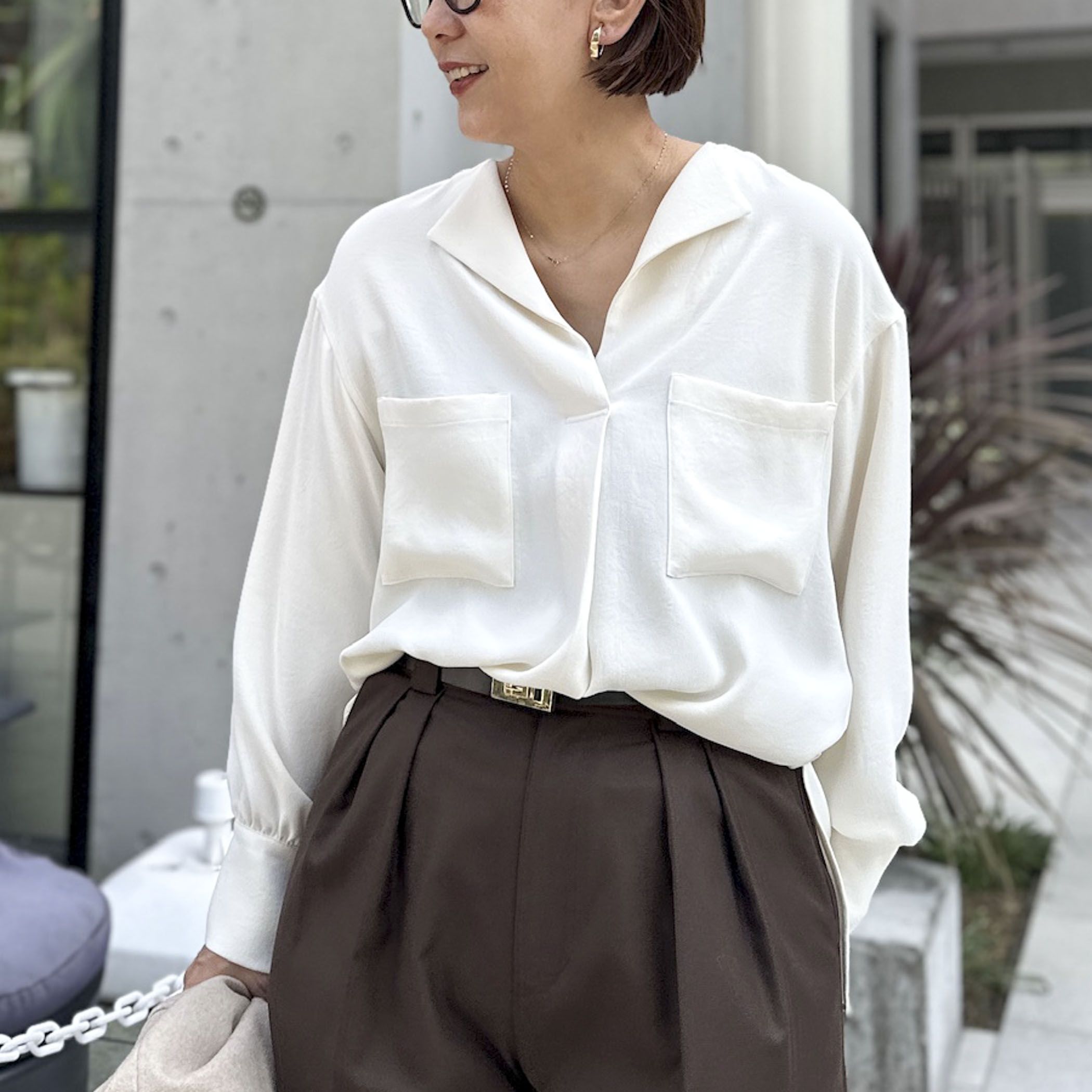 ◇25AW◇NOLLEYS sophi◆Point・ロングセラーのmorisachi pantsとセットアップ着用可能なスキッパーシャツが登場!・フロントタック入りスキッパ―シャツ・パウダリーかつドライなタッチで端境期に適したダブルクロスサテンを使用・ゆとりのあるサイジングで快適な着心地・単品でも着まわしやすい、シンプルながら抜け感もあるデザイン・シワになりにくいイージーケアアイテム・同シリーズのイージーワイドパンツ(5-0030-5-09-051)イージースカート(5-0030-5-06-051)とセットアップ着用可能・フレンチブラウス(5-0030-5-01-051)と同素材●お取扱い上のご注意●末永くご愛用頂くために、アテンションタグを必ずご確認の上、着用又はお取り扱い下さい。気になる商品は、お気に入り登録がオススメです!クーポン情報、入荷情報が、通知されるようになります。※手洗い可※店頭及び屋外での撮影画像は、光の当たり具合で色味が違って見える場合があります。商品の色味は、スタジオ撮影の画像をご参照下さい。※商品画像に関しては出来る限り忠実に表示出来るよう努めておりますが、お客様がご利用のモニターの設定及び特性により、実際の商品と比較し色味に若干の誤差が生じる場合があります。※画像の商品はサンプルとなりますので実際の商品と仕様、加工、サイズが若干異なる場合がございます。