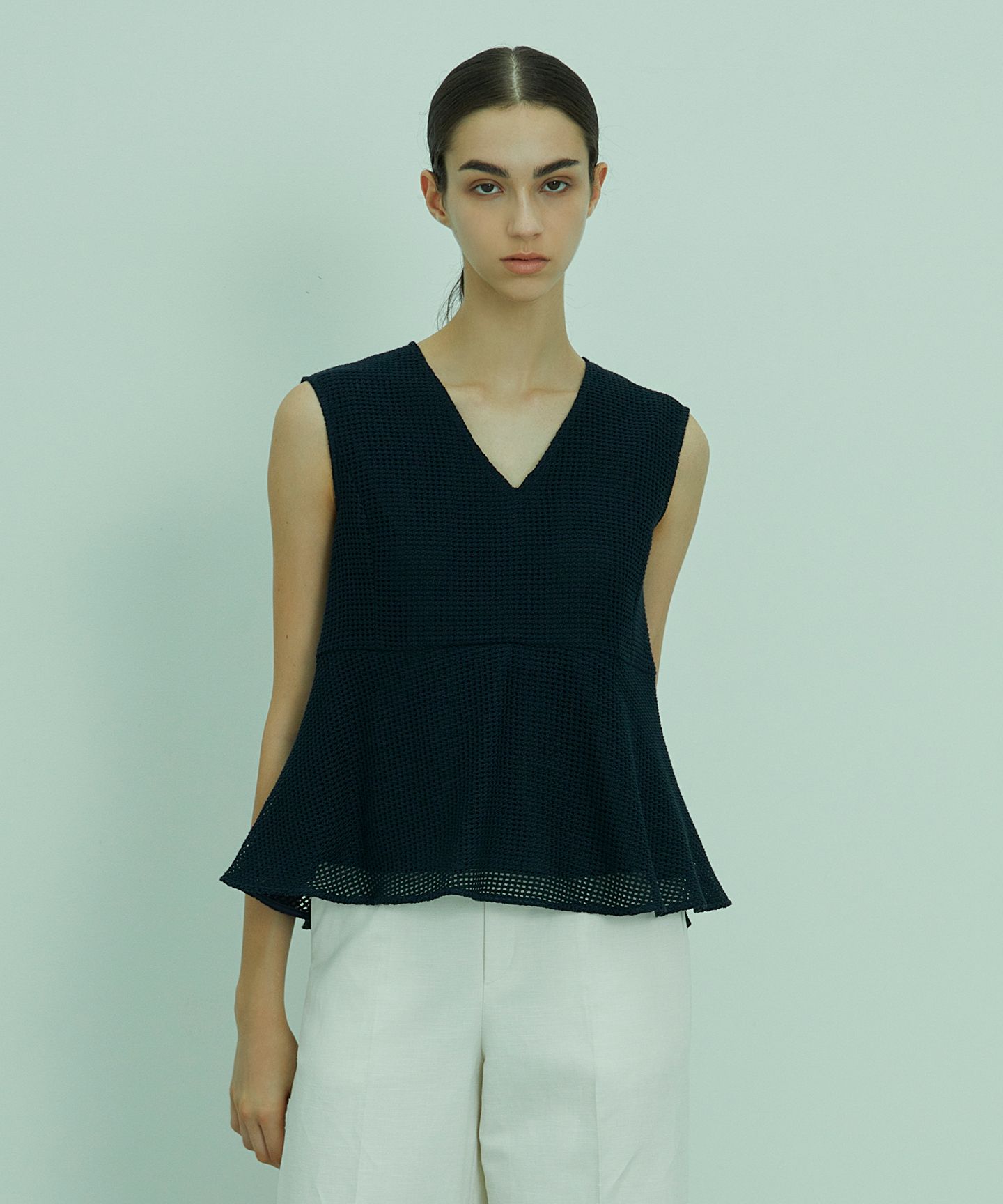 2023 S / S CollectionPINE(パイン)レースが上品な夏のペプラムスタイル■デザインノースリーブのペプラムブラウスです。メリハリのある直線的なシルエットとVネックがペプラムの甘さを抑えすっきりとした印象に。■スタイリングウエストをすっきり見せるペプラムデザインは、スタイルにメリハリ感を与え、女性らしさを引き出してくます。ワイドパンツと合わせたマニッシュな着こなしや、同素材のスカートと合わせた統一感のあるコーディネイトもおすすめです。■素材綿糸とポリエステル糸を3本合わせた糸を使用して、清涼感のあるタッチと表情感を演出したカラミ織り素材です。ジオメトリックなスクエアパターンとナチュラルな手触りのコントラストが特徴的。フェミニンになりすぎないレースの素材感が遊び心のあるアイテムを作ります。■同素材アイテムPINE / フレアスカート(SKCWSM0505)PINE / フレアワンピース(OPCWSM0505)□こちらの商品にはSサイズの展開がございます(BLCXSM0505)※モデル着用の画像は、一部照明等の関係で色味が違って見える場合がございます。また、お使いのPC・スマートフォン等のモニター環境などによっても左右される場合がございますので、予めご了承ください。※商品画像はサンプルを使用しているため、実際にお届けする商品と色味や細部の仕様に若干の変更がある場合がございます。予めご了承ください。