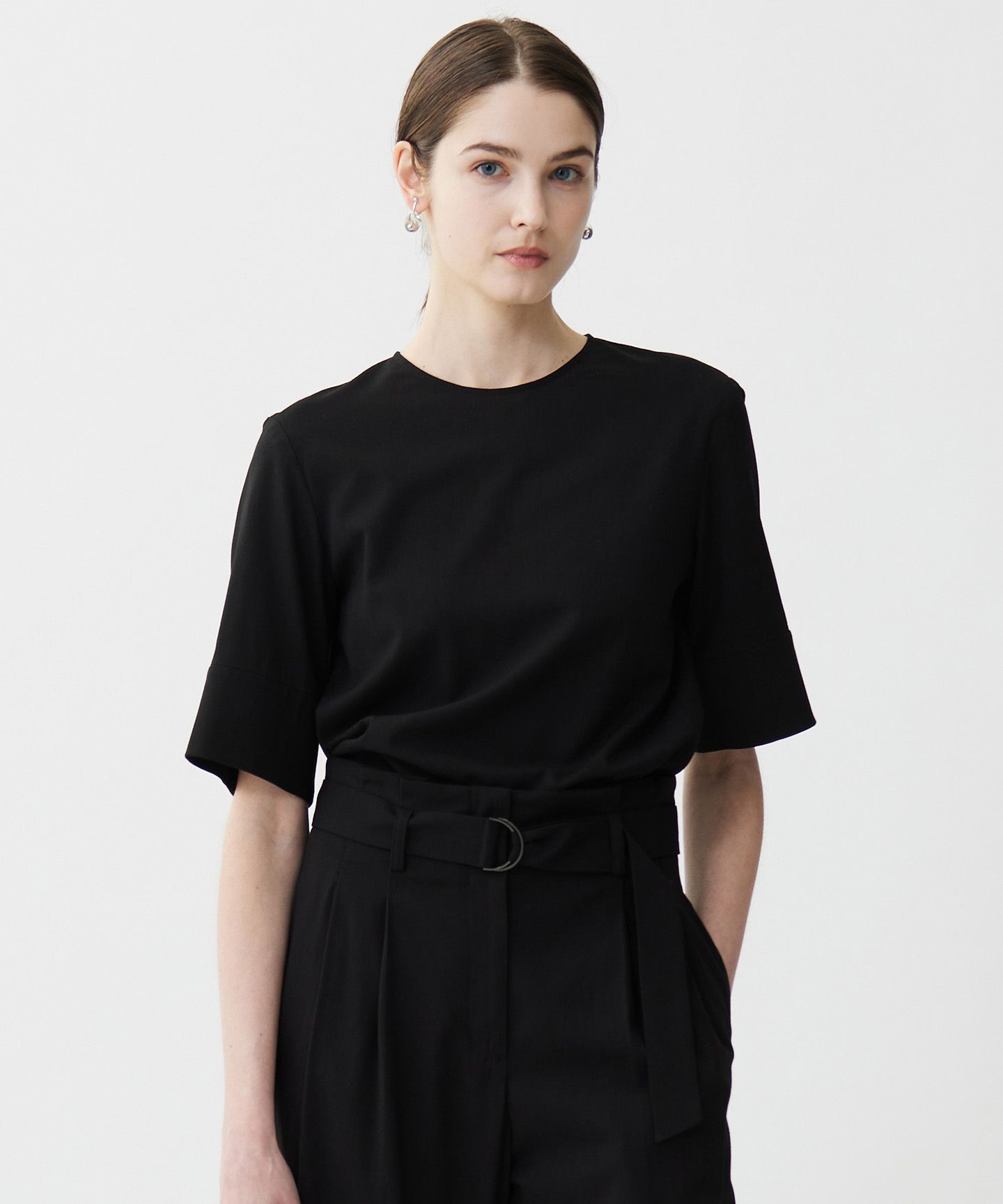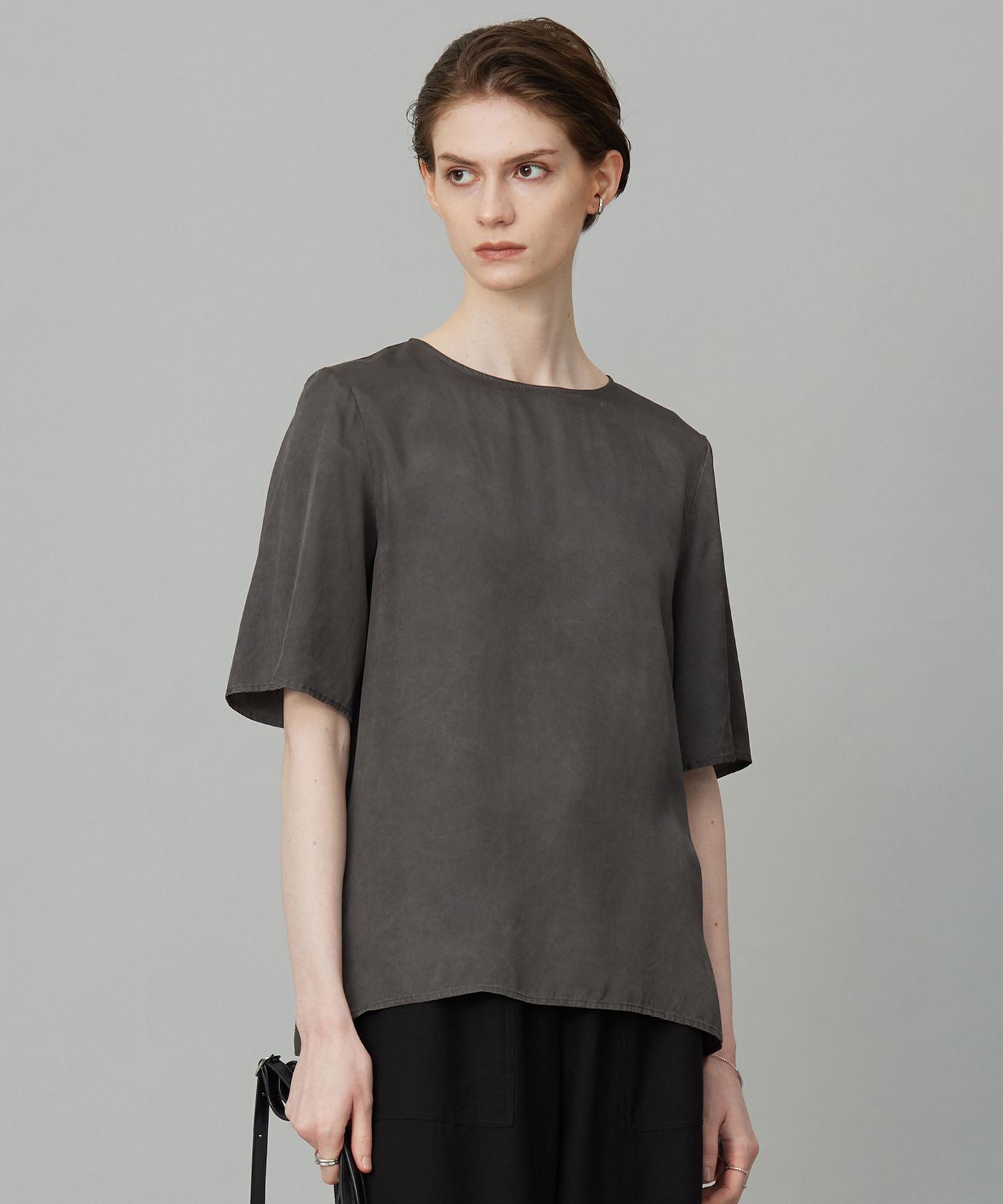2025SS表情感のある素材が洗練された印象の半袖ブラウス■デザイン前後差の付いたサイドスリットがポイントのシンプルなブラウスです。素材表情を活かしたベーシックなデザインで、一枚はもちろん、同シリーズのカーゴパンツとのセットアップ着用もおすすめです。■素材キュプラを環境配慮型の顔料で染色した、適度な落ち感とシルクのようなフィブリル感が特徴の素材を使用しています。製品洗いをかけ、トレンドのフェード感やアタリを効かせたリラックス感のある上品なヴィンテージ表情に仕上げています。※特殊な加工で仕上げているため、着用時の摩擦によって他の衣服やバッグ等へ色移りする恐れがございます。特に淡色系との色合わせにはご注意ください。※本製品はヴィンテージ風に仕上げるため製品洗いを施しており、色やアタリの見え感に個体差がございます。1点1点異なる商品の味をお楽しみいただけるよう、ご理解いただいた上でお買い求めください。※商品の取り扱い方法につきましては、タグ等に記載されている「取り扱い上の注意」「洗濯表示」をご確認ください。※採寸情報はサンプル商品のデータです。実際の商品と仕様が異なる場合がございます。※商品画像はサンプルを使用しているため、実際にお届けする商品と色味やサイズなどの仕様に変更がある場合がございます。予めご了承ください。