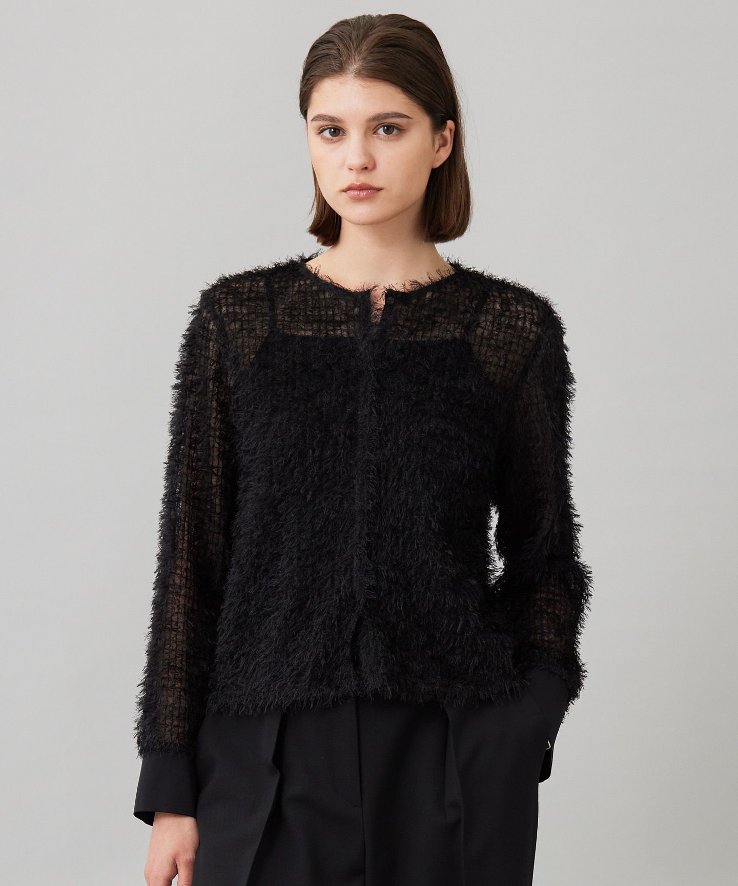 2025AW羽織りとしても着回せる!表情感のあるチュール素材の華やぎブラウス■デザイン素材表情のある、軽い着心地のブラウスです。羽織としても使いやすく、インナーとボトム次第で着回しが効く便利なアイテムです。きれいめにも着用でき、オケージョンシーンの羽織にもおすすめです。■素材ポリエステルのチュール下地にフェザーヤーンで刺繍を施した、立体的なチュール素材を使用しています。羽のような雰囲気の華やかさと上品な透け感、伸縮性があり、トレンド感溢れる素材に仕上げています。※商品の取り扱い方法につきましては、タグ等に記載されている「取り扱い上の注意」「洗濯表示」をご確認ください。※採寸情報はサンプル商品のデータです。実際の商品と仕様が異なる場合がございます。※商品画像はサンプルを使用しているため、実際にお届けする商品と色味やサイズなどの仕様に変更がある場合がございます。予めご了承ください。