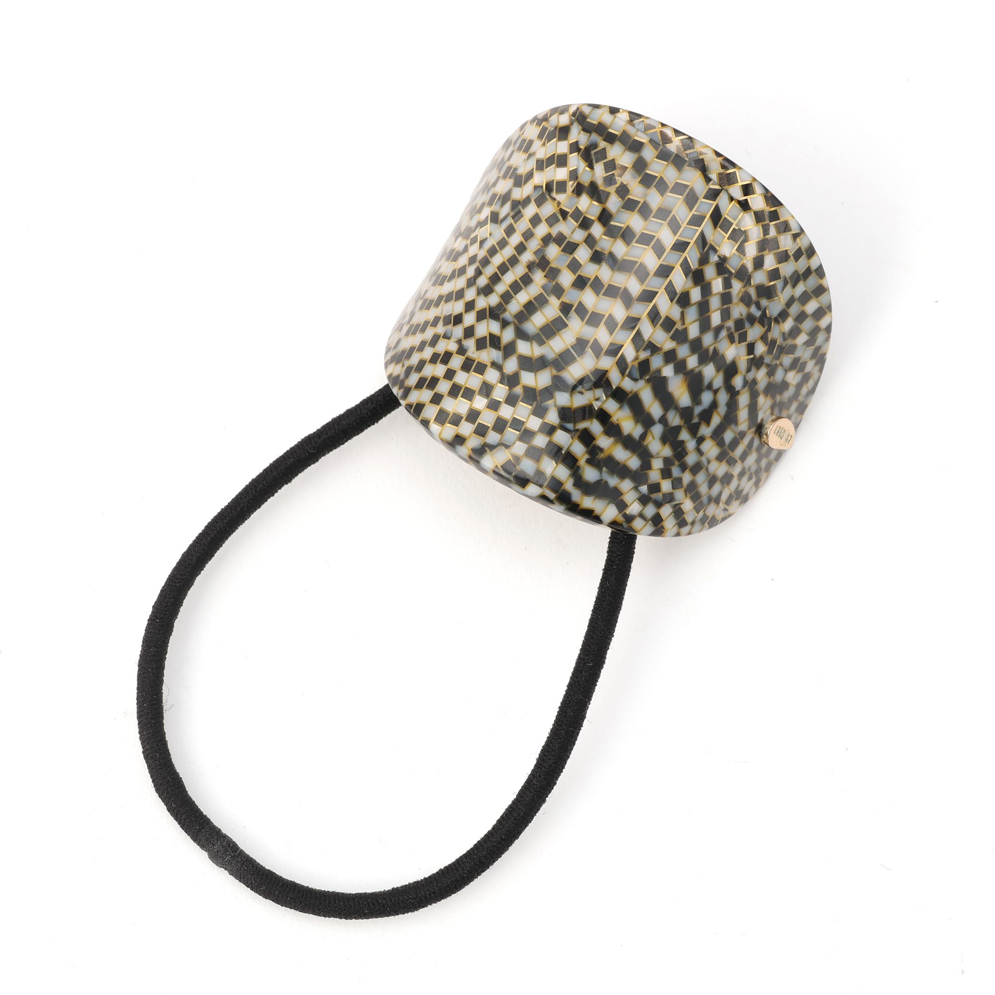 【ヴェロニク ポニー】鉱物や石などの美しい自然物からインスピレーションを得た、シックなマーブル模様に知性が漂うヘアゴム。柔和で曲線的なシルエットと温かみのあるリッチな艶が、身につける人の品格と愛らしさを引き出します。結んだ髪をしなやかに包み込むようなフォルムが、後ろ姿を優しく上品に演出。ニットやデニムといった何気ないスタイルの格上げにぴったりです。裏側の金具を開閉することでヘアゴムを付け替えられるのも魅力です。※素材の特性上、模様は個体差がございます。一点物の魅力としてお楽しみくださいませ。※オリジナル巾着にお入れしてお届けします。