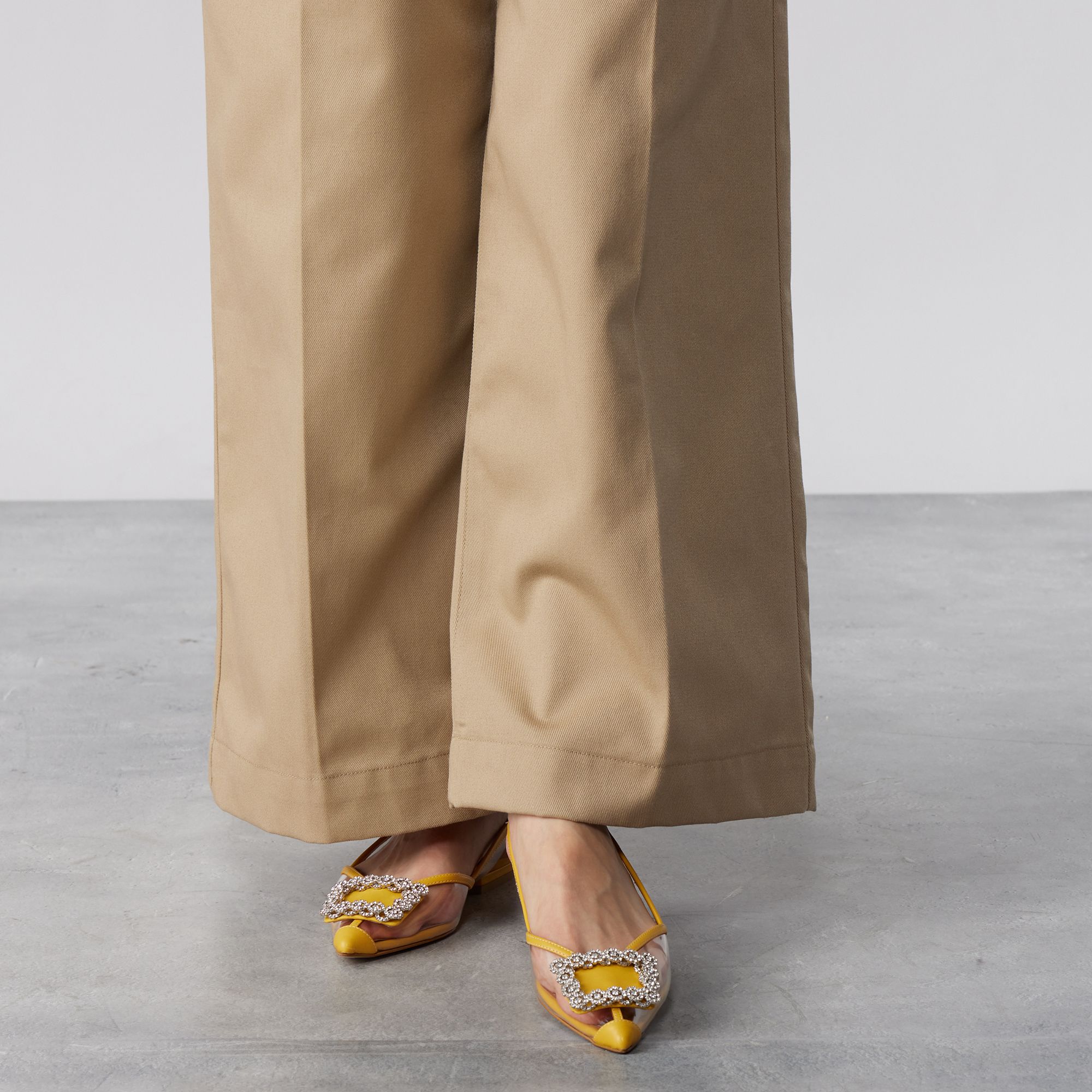 ポインテッドトゥや膨らみのあるキルティング生地で、エレガントにまとめたフラットミュール。バックストラップはゴムなので窮屈感もなく、着脱も楽ちん。季節を先取るカラーリングで、差し色としても定番アイテムをリフレッシュしてくれる一足です。
