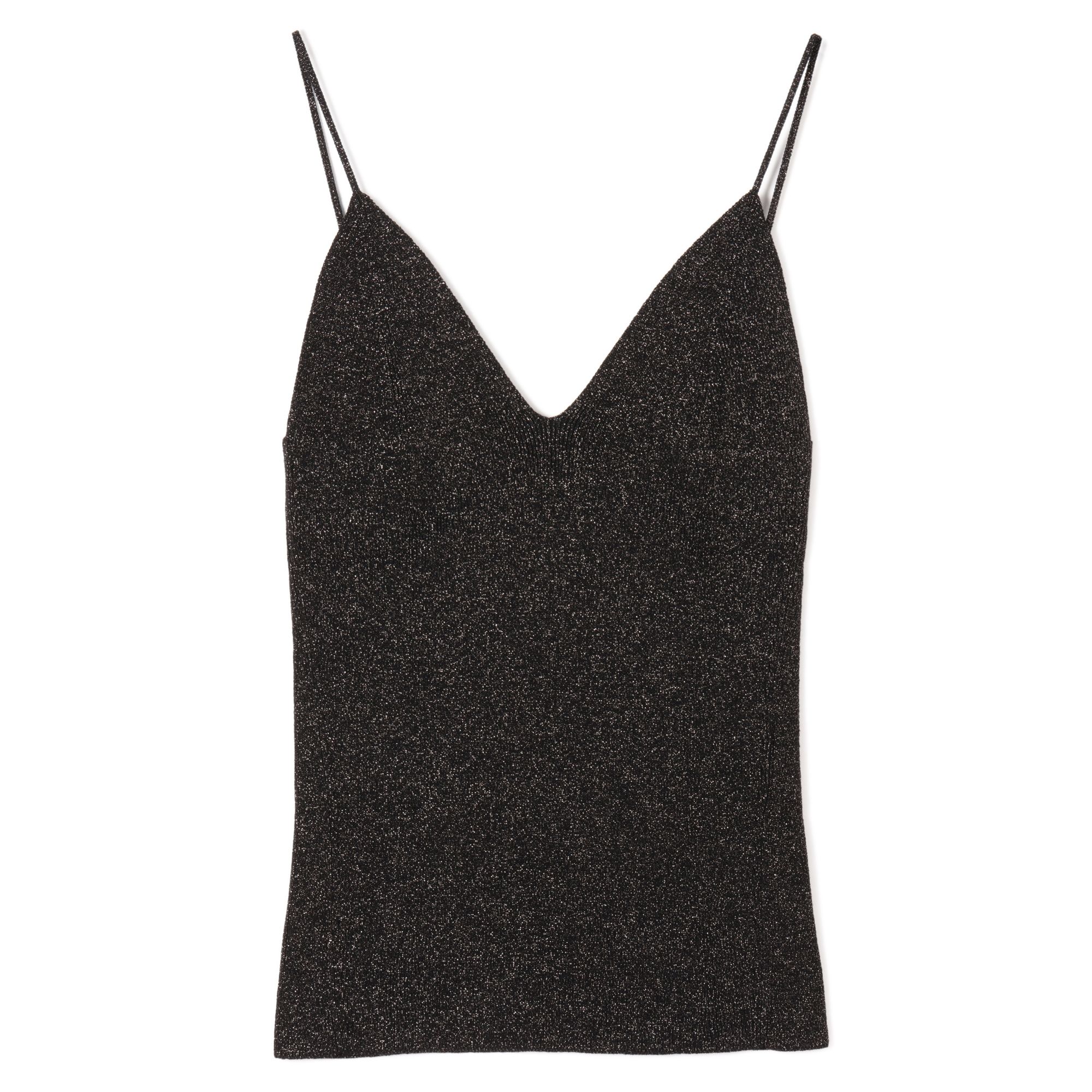 やや深めのV開きでINも映え、レイヤード使いもしやすいタンクトップ。ドレッシーになりすぎないラメの煌めきや、バックのラインも軽快さやモダンなムードを後押し。薄手のリブ生地で着膨れせず、こなれた感じに馴染む一枚です。※タンクトップを畳んで収納できる同素材の袋付き