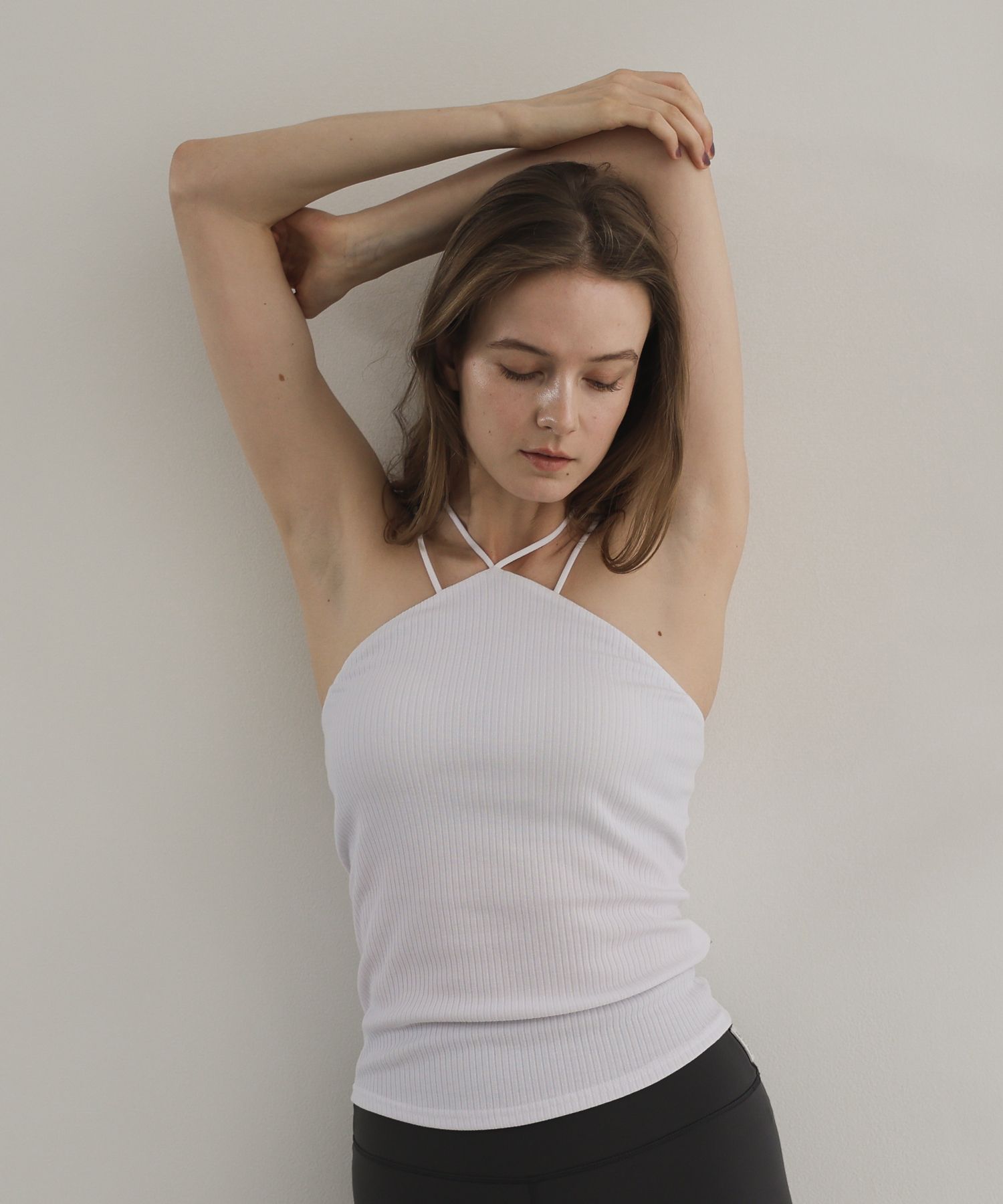 しなやかに伸びるリブ素材と、身体を美しく見せる計算された斜めカットで、1枚でもサマになるクロスキャミソールです。肌にやさしく圧のかからない柔らかい2本のストラップが、バックでクロスすることでフィット感を高めつつ、美しいシルエットを引き立てます。バスト部分が前面はしっかりホールドしながら、後ろはゴムなしのストレスフリー設計で快適な着心地を実現。さらに、取り外し可能なパッド付きだから、インナー要らずでラクに着用できます。デイリーからワークアウトまで、幅広く活躍する一着です。・取り外し可能なパット付き・裾がめくれず逆転ポーズも安心-------------------------透け感 :なし伸縮性 :あり生地の厚さ:普通着圧感 :普通-------------------------<モデル>着用サイズ:0BAYA(ホワイト・ネイビー)177cmKEYWORDジュリエ ヨガ ヨガウェア トップス 無地トップス キャミソール パット付き ホットヨガ ランニング ピラティス※ご試着の際には、必ず下着を着用いただきますよう、お願い致します。※実際の商品はお客様のお使いの端末や閲覧環境により、写真と実物の色味や質感が多少異なって見える場合がございます。予めご了承ください。【 Julier Yoga and Relax 】ライフシーンに合わせたファッションを楽しみ自分自身を大切に生きる女性の日常を演出する、ヨガ&リラックスウェア。リラックスタイムやワンマイルにも使えるウェアや環境に優しいECO素材に、優れた機能素材。速乾性がありお手入れしやすいアイテムを揃えたコレクションです。日々の延長線上にある、サスティナブルなものづくりを目指しています。【お買いものをお楽しみいただく為に】※ブランドのお気に入り登録新商品や再入荷など、いち早くブランドのお得な情報を受け取ることができます!※商品のお気に入り登録完売カラーの再入荷通知やラスト1点の通知、セールの通知も受け取ることができます。是非、この機会にご登録をお願いします!