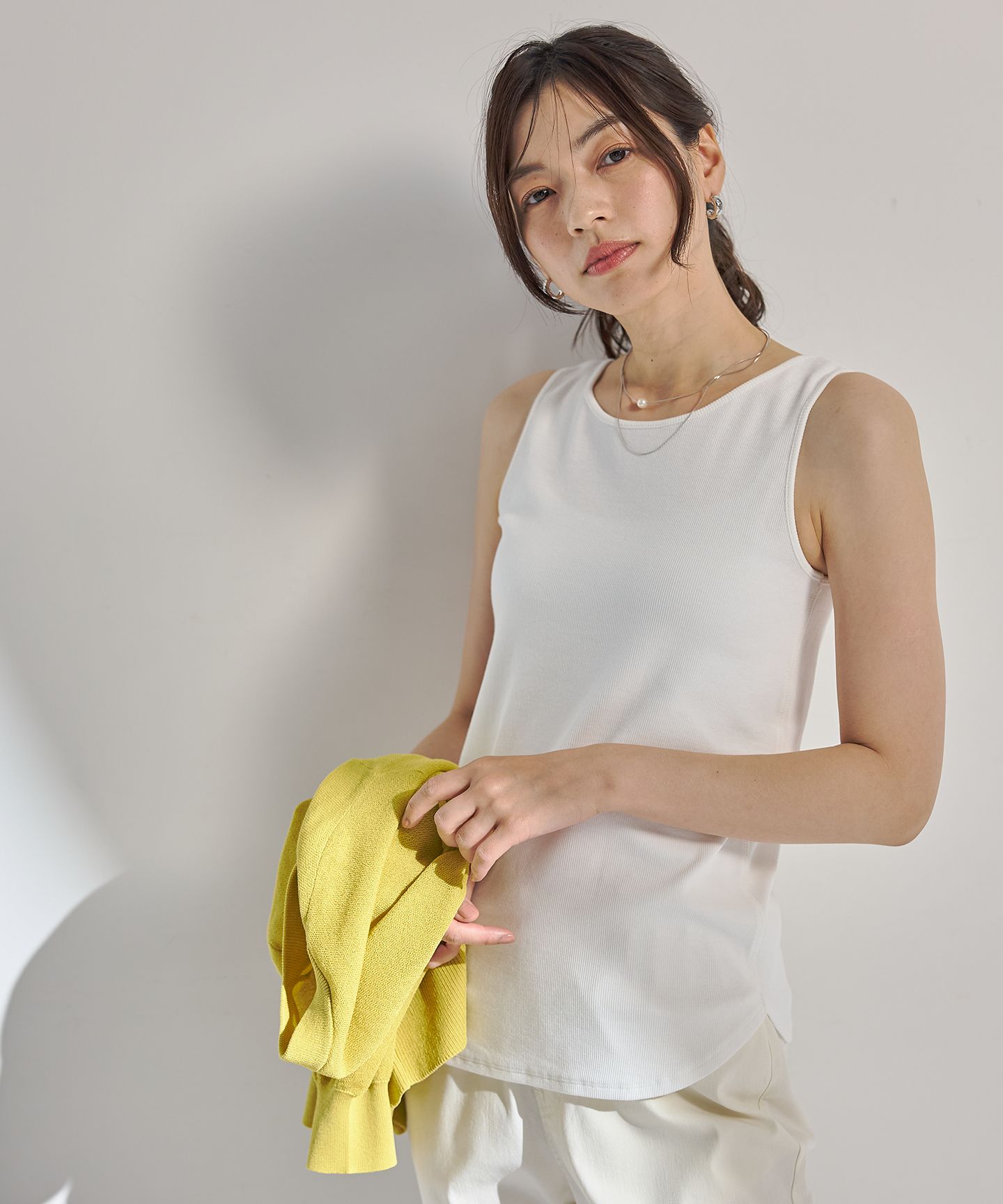 \大好評につき新色登場!/レイヤードスタイルにもおすすめ!ラウンドタンクトップデザイン・シンプルなデザインなので、1枚あると便利な定番タンクトップ・脇線は3本針ステッチを入れることで縫い代が目立ちにくい仕様・身体に縫い代が当たるのを軽減してくれるデザイン・太目のバインダーネックがアクセントになり、気になる胸元の伸びも気にならず着用可能・単色と細ボーダーでそれぞれ見え感が違うため、色違いで持っておくのもおすすめ素材 ・透けにくい肉感のテレコ素材を使用・毛羽も少ないスッキリとした表面感が特徴・ご自宅での洗濯機洗いが可能なのも嬉しいポイント・UVケア、接触冷感、抗菌防臭の嬉しい機能付きスタイリング・カジュアルなデニムからキレイ目なスカートまでどんなボトムスとも好相性・インナーとしてレイヤードスタイルを楽しんだり、1枚でも着用可能※画像はサンプルを使用している為、実際にお届けする商品と仕様、加工、サイズが若干異なる場合がございます。予めご了承ください。※モデル画像は撮影環境の都合上、実際の商品と色味が異なって見える場合がございます。色味は商品画像をご参照ください。※お取り扱いに関しましては、商品に付属のアテンションタグをご覧ください。※サイト上のカラー名と、お届け商品に記載されているカラー名が異なる場合がございます。※生産時期により色・素材・サイズ感など多少異なる場合がございます。予めご了承ください。【お買い物をより楽しんで頂くために】▼商品のお気に入り登録ハートマークをクリックし、お好きなカラーを選んでお気に入りに登録が完了!完売カラーの再入荷通知や、ラスト1点の通知、セールの通知も受け取ることができます。▼ブランドのお気に入り登録新商品や再入荷等、いち早くブランドのお得な情報を受け取ることができます。※他のキャンペーンにより、期間中に価格が変動する場合があります。※セールは予告なく終了させていただく場合もあります。