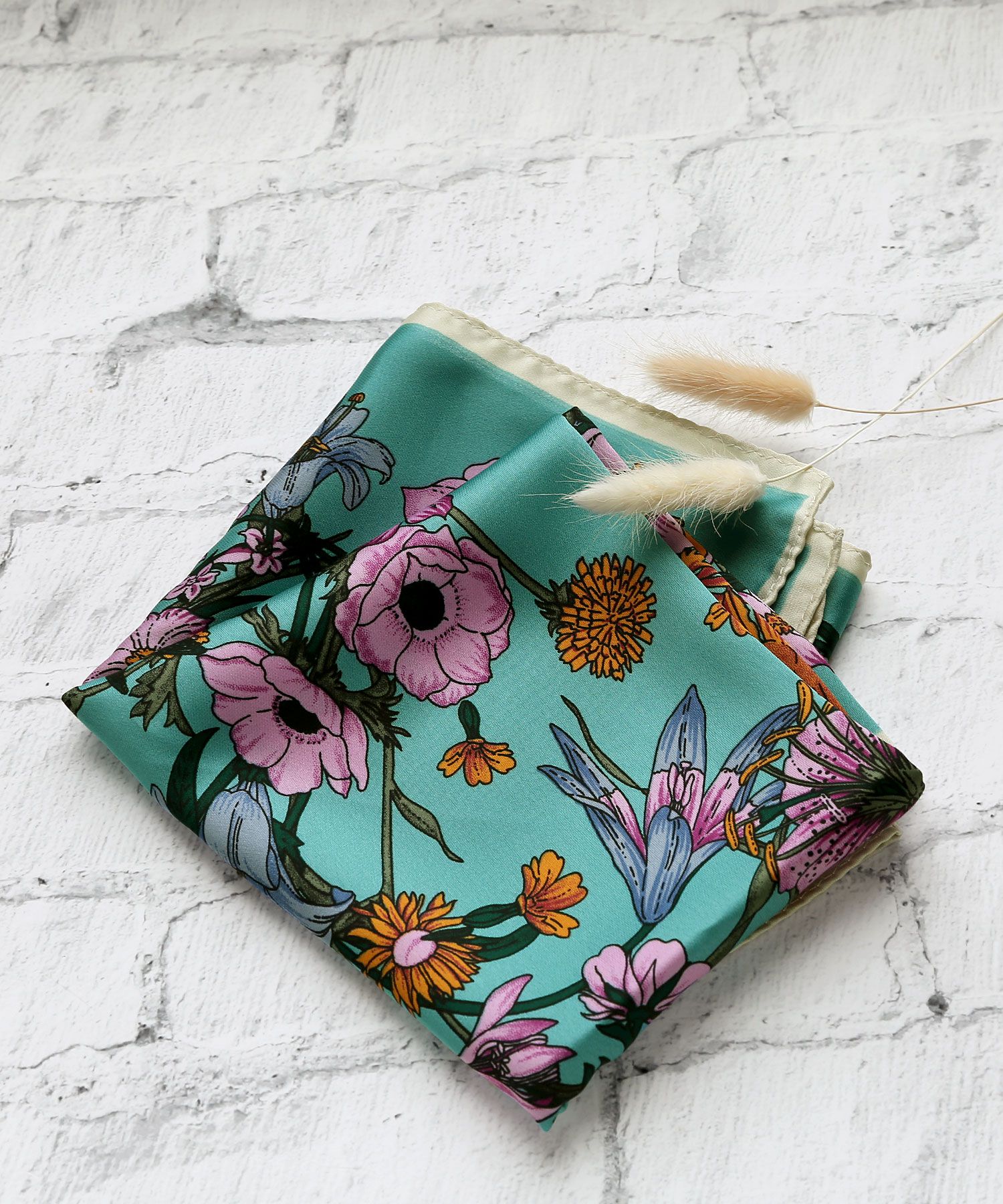 爽やかなペイズリー柄が引き立つモノトーンカラーの正方形スカーフ。ベーシックなカラーなのでお洋服やバッグの色にとらわれず、コーデに取り入れやすいお色味。襟元に巻くのはもちろん、ヘアアレンジに合わせればいつもの束ね髪も一気に華やかな印象になります。バッグなどの小物のワンポイントとしてもおすすめ。【pick up points】・コーデに取り入れやすいモノトーンカラー・しわになりにくく、お洗濯もラクチンなポリエステル素材・首に巻くだけでなく、ヘアやバッグに付けてもOK*注意事項撮影場所やイメージにより実際の商品と色味が若干異なる場合がございます。商品のお色味はカラーバリエーション画像をご参照ください。