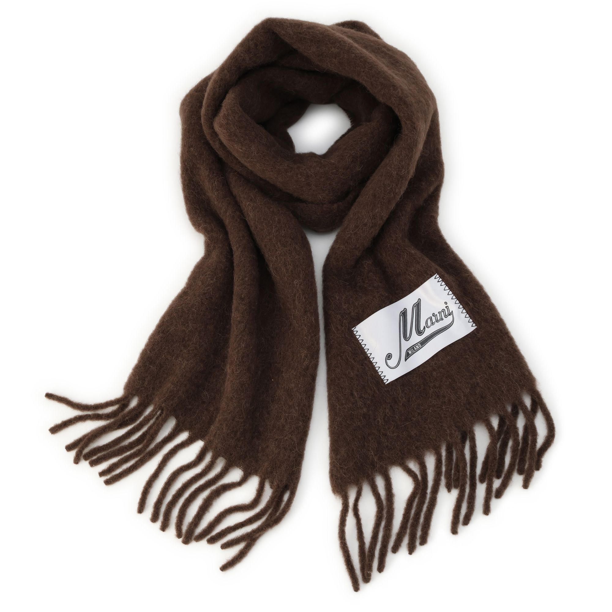 ナイロンミックスのアルパカ生地を使った、大人フェミニンなロングスカーフ。アルパカの優しい温もりが心地よく、飽きずに長く愛用できます。ポイントは、ロングフリンジとロゴ入りのラベル。落ち着きのあるカラーで、多彩なスタイルに投入できます。