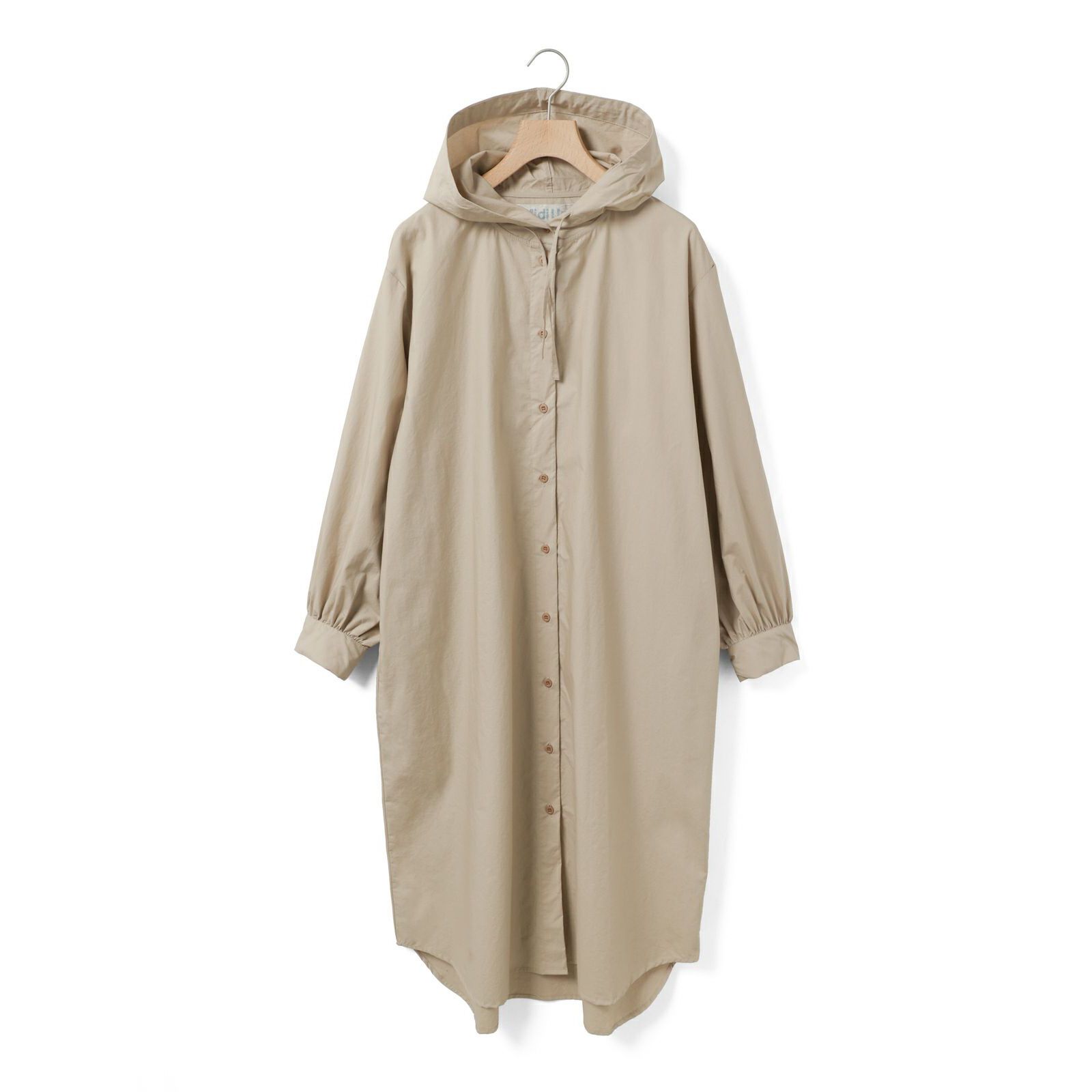 コートとして羽織ったりトップスとしても使える厚みの生地感が特徴。袖のふんわり感がポイント。裾は前後差がついており丸みのあるシルエットを表現。パンツを重ねたりワンピースとしてベストを重ねたりとコーディネートを楽しんでいただける1枚です。