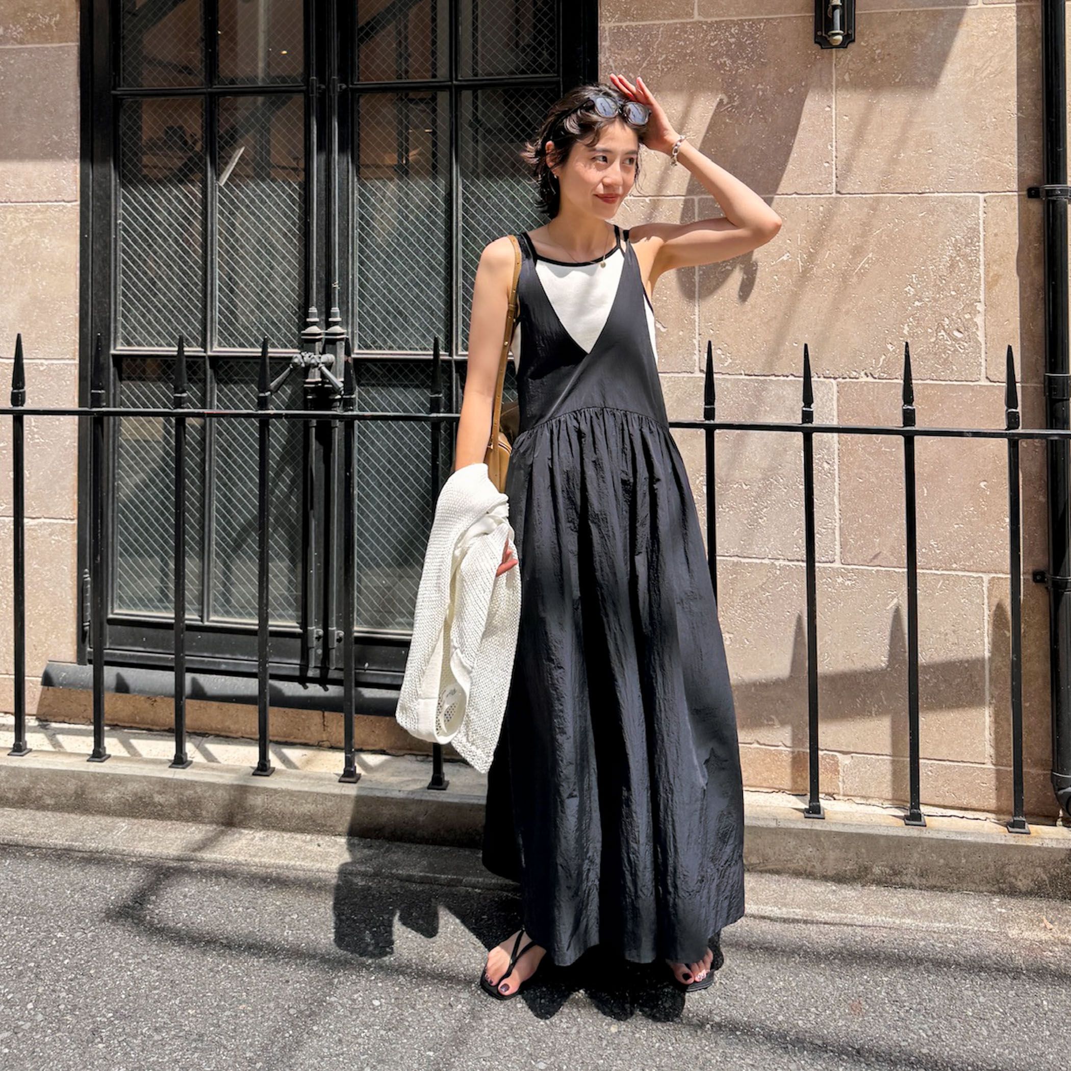 ◇25SS◇MAQWEL【WEB限定】◆Point・細良いハリ感のあるタフタ素材のキャミワンピース・深めのVネックと大きく開いたバックスタイルがヘルシーな1枚・後ろはゴム仕様でゆとりある着心地・紐の長さ調節が可能で、様々な身長の方にマッチ◎・タンクトップやノースリーブ、Tシャツなど、インナーアレンジを楽しめるアイテム【MAQWEL(マクウェル)】「日常のなかで力強さとしなやかさを併せ持つ女性のための服」ベースには、洗練されたマニッシュスタイルとヘルシーな着こなしの叶うシンプルなアイテムを。そこにヴィンテージの温かみや、センシュアルなフェミニンさをエッセンスとして加え、いろんな顔を持つ現代女性の気分やシーンに合わせて、その日の自分を自由に表現できる服をお届けします。●お取扱い上のご注意●末永くご愛用頂くために、アテンションタグを必ずご確認の上、着用又はお取り扱い下さい。気になる商品は、お気に入り登録がオススメです!クーポン情報、入荷情報が、通知されるようになります。※手洗い可※店頭及び屋外での撮影画像は、光の当たり具合で色味が違って見える場合があります。商品の色味は、スタジオ撮影の画像をご参照下さい。※商品画像に関しては出来る限り忠実に表示出来るよう努めておりますが、お客様がご利用のモニターの設定及び特性により、実際の商品と比較し色味に若干の誤差が生じる場合があります。※画像の商品はサンプルとなりますので実際の商品と仕様、加工、サイズが若干異なる場合がございます。