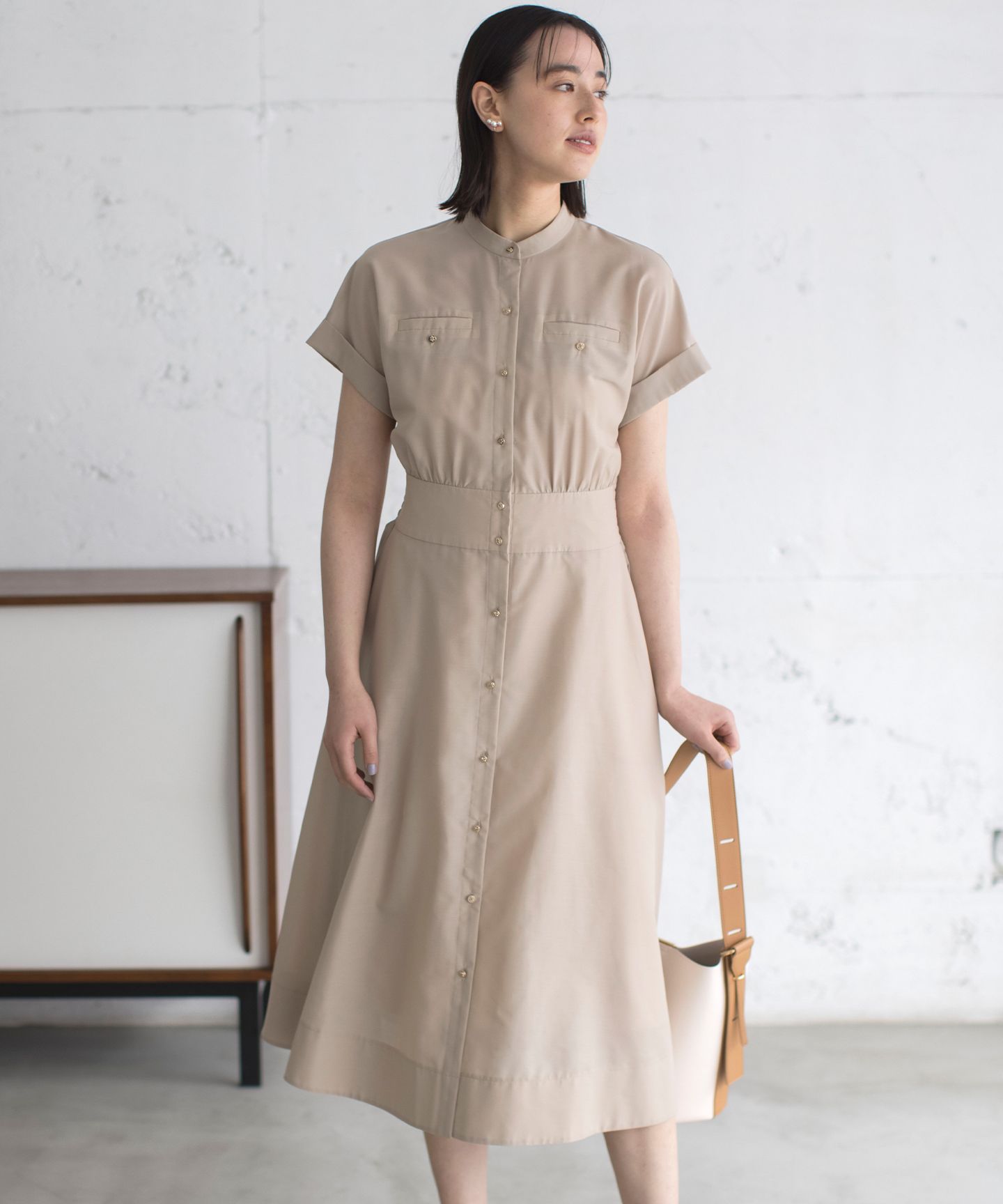 軽やかな着心地で「きちんとキレイ」を約束するシアー素材のワンピース■デザインシアーな素材感とゴールド釦の掛け合わせが目を惹くワンピースは後ろにボリューム感を出した女性らしさのあるシルエットが魅力です。バンドカラーでややゆったりとしたシルエットですが、太めのウエストヨークがシルエットにメリハリを与えてくれます。バックにはシャーリングゴムを施すことで、着心地はもちろん、ウエストにすいつくようにさり気なくシェイプさせ、体型をカバーしてくれるようデザインしました。袖は肩が隠れる長さでスッキリと着ていただけます。釦を全てあけてパンツやレギンスと合わせ、シャツ羽織風にスタイリングしていただくのも素敵です。■素材さらっとした清涼感のある肌触りと軽やかで抜け感のある天然素材のような雰囲気を残しています。やわらかさのある光沢感が上品な印象を与える洗練されたカジュアルな素材です。また透けすぎない素材感もポイントです。※画像はサンプルを使用しているため、実際にお届けする商品と色味やサイズ等の使用に変更がある場合がございます。予めご了承ください。【お買い物をより楽しんで頂くために】▼商品のお気に入り登録ハートマークをクリックし、お好きなカラーを選んでお気に入りに登録が完了!完売カラーの再入荷通知や、ラスト1点の通知、セールの通知も受け取ることができます。▼ブランドのお気に入り登録新商品や再入荷等、いち早くブランドのお得な情報を受け取ることができます。※他のキャンペーンにより、期間中に価格が変動する場合があります。※セールは予告なく終了させていただく場合もあります。
