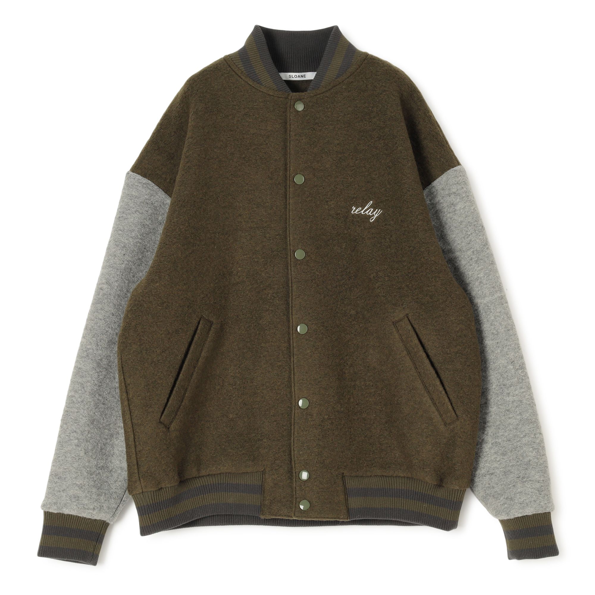 素材切り替えやワッペンなどでひとクセ効かせた、ヴァーシティジャケット。リュクスな光沢を放つメルトン生地と、シボ感のあるカーフレザーの袖でより上級ニュアンスに。裏地はキルティングの中綿仕様で温かく、袖にもゆとりがあるのでニットの上に重ねても窮屈感なく着られます。