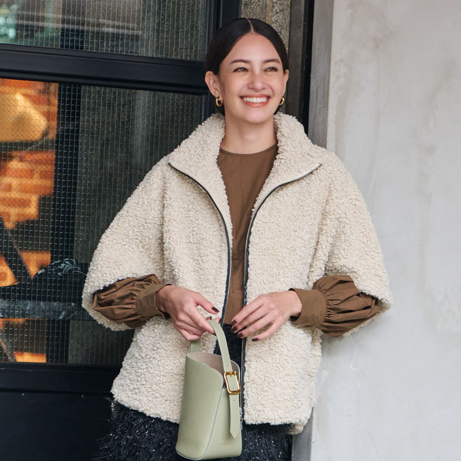 くるんと巻いたプードルボアが印象度を高める、半袖タイプのジップブルゾン。ゆったりとした肩まわりなので窮屈感なく、優しい温もりに包まれるスタンドネックもポイント。着丈も長いのでレイヤードもしやすく、今っぽいリラックス感も魅力です。