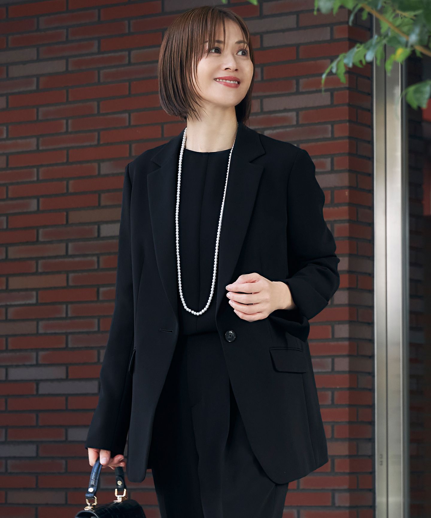 春夏に嬉しい機能性に富んだテーラードジャケット■デザイン1枚持っていると便利な定番のテーラードジャケットです。ベーシックなデザインですが、コンパクトですっきりとした美しいシルエットがポイントです。ワンピースの上から羽織ったり、同素材のスカート(SKWMCM0403)と合わせたセットアップでの着こなしがおすすめです。※モデル画像はサンプルを使用しており、実際にお届けする商品はポケット位置、ボタン位置がやや上になります。正しい仕様は物画像(モデル着用ではない画像)をご参照ください。■素材ドライタッチで肌離れの良いポリエステル強撚素材を使用しております。膨らみがあり程よくストレッチ性があるため着心地が良く、生地に反発性があるのでシワになりにくいのもポイントです。UVカット、接触冷感、ウォッシャブルと気温が高くなる春夏に嬉しい機能性に富んだ素材です。■同素材アイテムノーカラージャケット(JKWMCM0402)ジレ(VRWMCM0402)ブラウス(BLWMCM0402)テーパードパンツ(PRWMCM0402)フレアスカート(SKWMCM0403)※画像はサンプルを使用している為、実際にお届けする商品と仕様、加工、サイズが若干異なる場合がございます。予めご了承ください。※撮影環境の都合上、実際の商品と色味が異なって見える場合がございます。