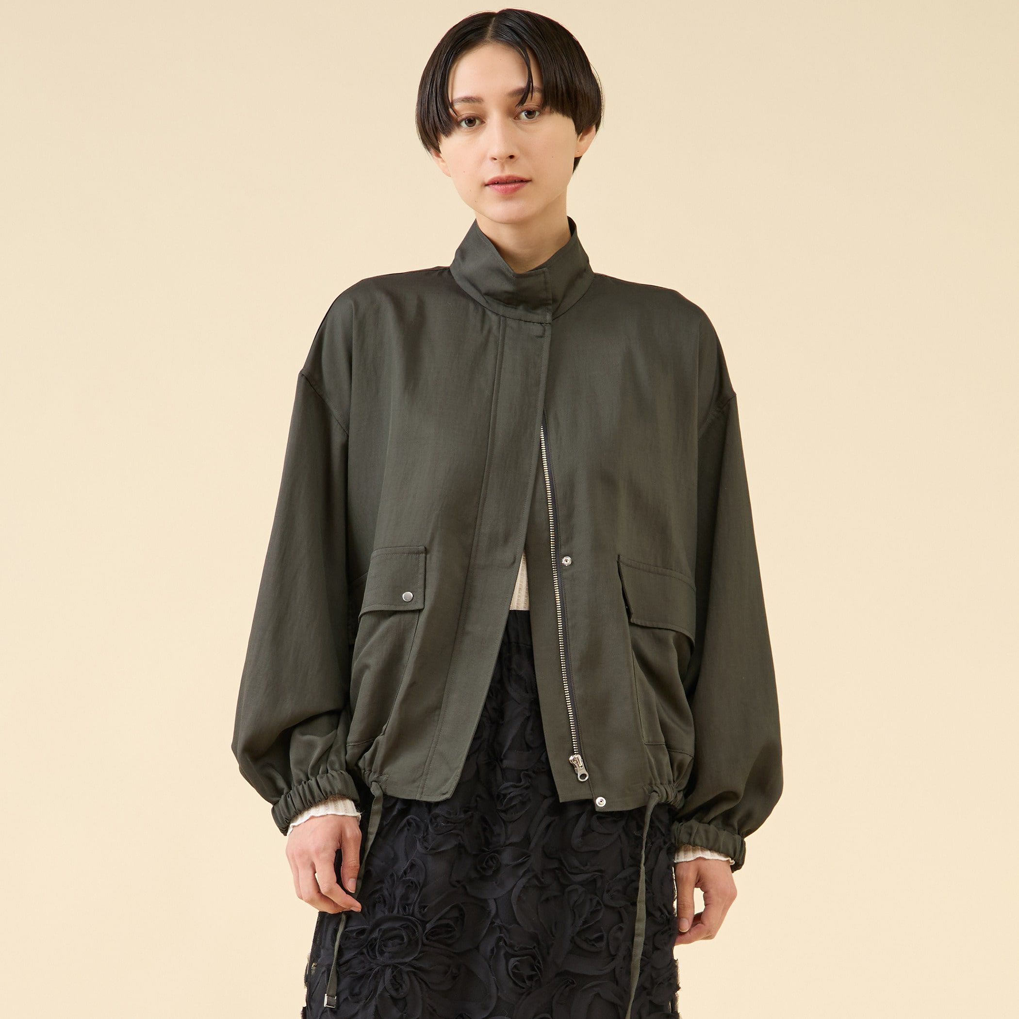≪デザインポイント≫ギャザーとタックで作ったボリューミーなフォルムが特徴的なノーカラーブルゾン。お尻丈でバランスが取りやすいです。ポケットが少しメンズライクなので甘すぎない雰囲気に仕上がっています。≪素材・着心地≫イタリアのテキスタイルブランドでデザインされ中国で生産された高クオリティなタフタ素材。普段の生活撥水が叶うのがうれしいポイントです。≪おすすめの着こなし≫透け感:なし伸縮性:なし光沢感:ややあり裏地:総裏生地の厚さ:薄い