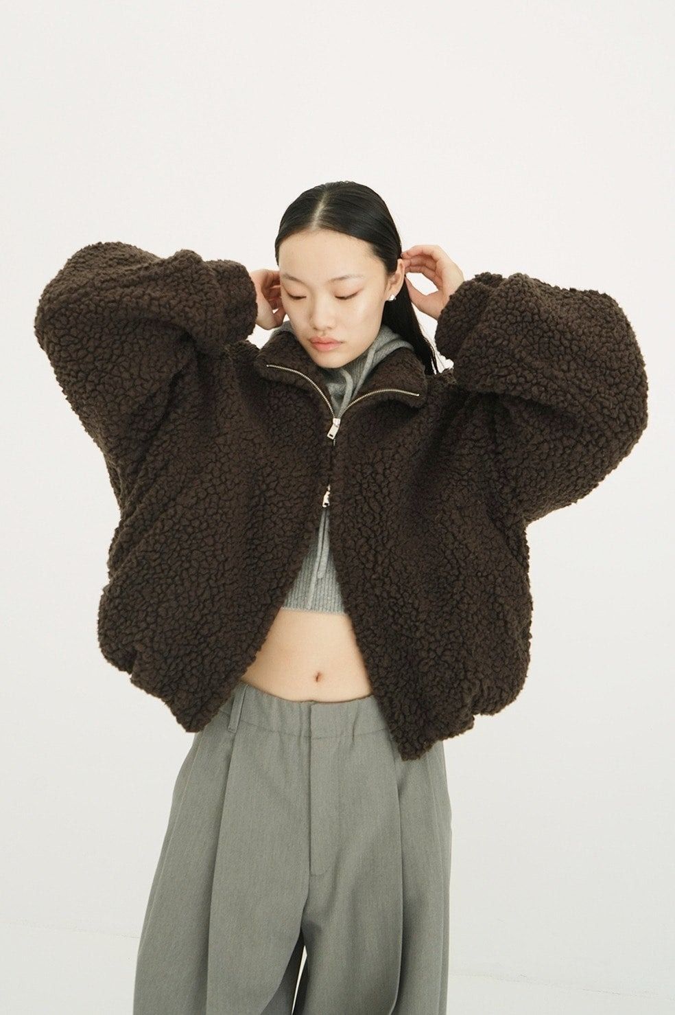 暖かく保温性に優れたウール混素材を使用し、大粒のボアでボリューム感がありながらも軽やかに仕上げました。自然な光沢と滑らかな毛並みが、高級感のある印象を引き立てます。肩を落としたワイドなフォルムと、CLANEらしい丸みのあるシルエットにこだわり、着丈はやや短めでトレンド感のあるバランスに。スタンドカラーで首元までしっかりと暖かく、両脇のポケットはニット裏地付きで、防寒性にも優れた冬に映える一着です。