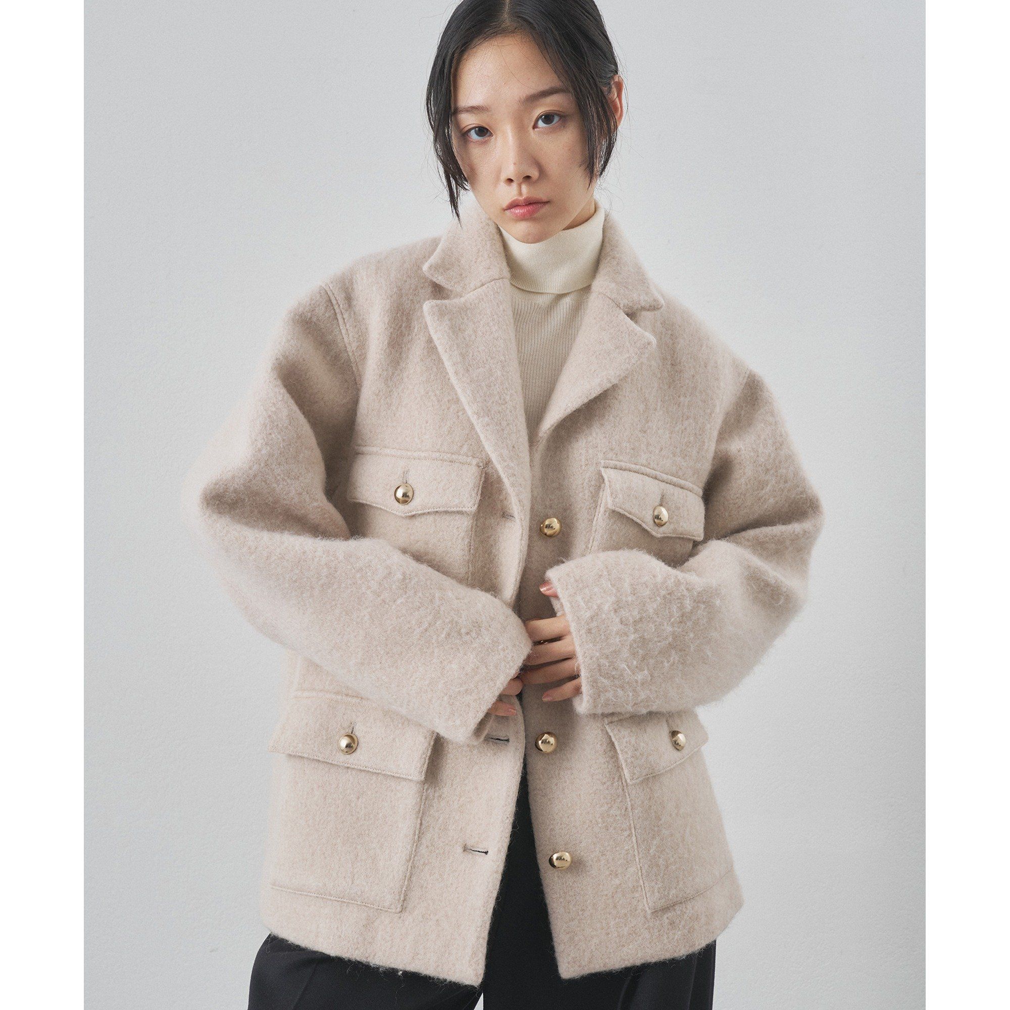 【2025AW】スタイリングの鮮度を上げてくれるシャギージャケット■シーズンムード漂うウォーム感が魅力のジャケットコート。■シャギーの表情感が鮮度のあるスタイリングに仕上げてくれる一着。■ラグジュアリーな素材を、あえてカジュアルなサファリジャケットに落とし込んだデザイン。■メタルボタンもアクセントになり、一枚でこなれた雰囲気に。■ジャケット感覚でもコート感覚でも使え、寒い季節もスマートな着こなしを楽しめるアイテム。【COLOR】オフホワイト:スタイリングを明るく華やかに導くオフホワイト。ベージュ:優しいカラーが幅広い着こなしに馴染むライトベージュ。【MATERIAL】モヘア混のループをカットシャギー仕上げにした、表情も軽さもエアリーな素材。----------------------------------------------------洗濯方法:ドライクリーニング透け感:なし裏地:あり伸縮性:なし光沢感:なし----------------------------------------------------【注意事項】・画像の商品はサンプルです。実際の商品と仕様、加工が若干異なる場合があります。また 、パソコンやスマートフォンのモニター環境などにより、色味が違って見える場合がございます。・店頭及び屋外での撮影画像は、光の当たり具合で色味が違って見える場合があります。商品の色味は、スタジオ撮影の画像をご参照ください。・入荷状況により、お届け予定が前後する場合があります。・お客様への発送が店頭販売より遅れる場合があります。・追加生産商品は、一部の店舗、通販で販売中の場合があります。予めご了承下さい。
