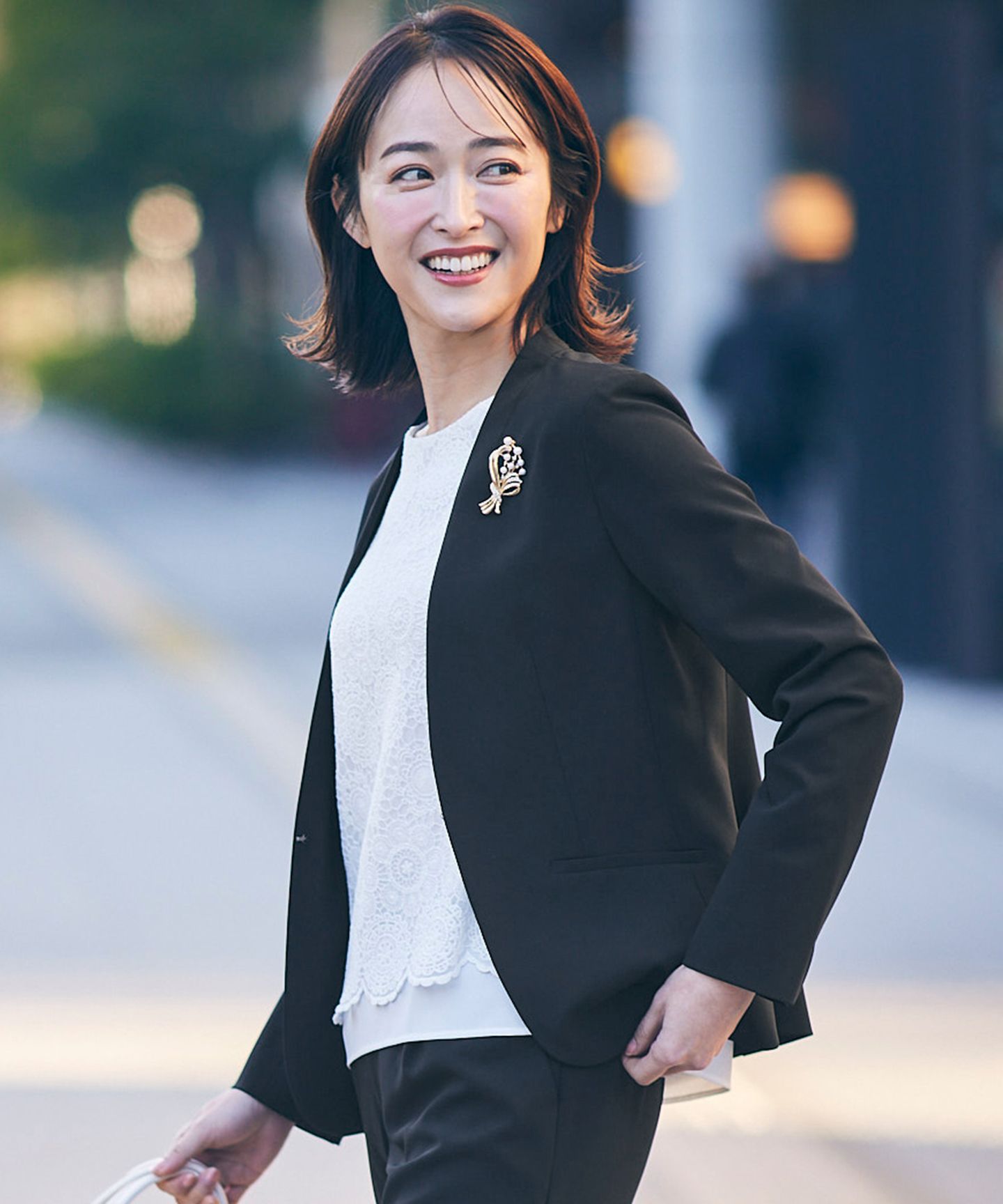 毎日のお仕事服にはもちろん、セレモニーシーンまで幅広く活躍!オールシーズン着用可能なセレモニーダブルクロスシリーズ■デザインシャープなカラーレスデザインと、きれいなシルエットでどんなボトムスにも合わせやすい万能アイテムです。袖口はスリット開きでリターン可能なデザイン。華やかなブローチやコサージュを合わせてセレモニーシーンに、シンプルに着こなしてオフィスやテレワークでのお仕事スタイルに、合わせるアイテム次第で幅広いシーンで着回し可能なのも魅力です。■素材シワになりにくく、縦方向にも横方向にも伸びるストレスフリーな着用感が人気のany SiS定番素材軸です。今年から素材をリニューアルし、光沢を抑えた程よい落ち着き感のあるジョーゼット風の表面感に。かしこまったシーンにも対応可能な品のある印象となっています。オールシーズン着用可能な程よい肉感と、サラッとしたタッチが特徴の着心地の良いポリエステルストレッチ素材です。■同シリーズアイテムセレモニーダブルクロス ノーカラージャケット(JKWPCS0191)セレモニーダブルクロス テーパードパンツ(PRWPCS0190)セレモニーダブルクロス ワイドパンツ(PRWPCS0191)セレモニーダブルクロス ワンピース(OPWPCS0190)■同型アイテムセレモニーダブルクロス ノーカラージャケット(JKWPGS0190)こちらの商品はサイズバリエーションがございます。Rレギュラーサイズ(JKWPCS0190) S小さいサイズ(JKWQCS0190) L大きいサイズ(JKWKCS0190)※サイズ感やシルエット等が異なります。詳細はサイズ寸法をご確認ください。※生産時期が異なるため、色味が若干異なる場合がございます。セットアップでの着用は同時期に生産された商品を推奨します。※セットアップ購入の際は、上記記載の同シリーズアイテム同士での購入がおすすめです。※商品画像はサンプルを使用しているため、色味やサイズ等の仕様に変更がある場合がございますので、予めご了承ください。※屋外での撮影画像は、光の加減で色味が違って見える場合がございます。商品の色味はスタジオ撮影の画像をご参照ください。#anySiS #エニシス #エニィシス #レディース #ジャケット #カラーレス #セットアップ #綺麗め #大人 #上品 #オフィス #無地 #きれいめ #きれいめファッション #きれいめコーデ #オフィスコーデ #オフィスカジュアル #通勤コーデ #お仕事コーデ #セレモニー #入卒 #シンプル #大人レディ #フェミニン #レディスタイル #ストレッチ #洗える #ウォッシャブル