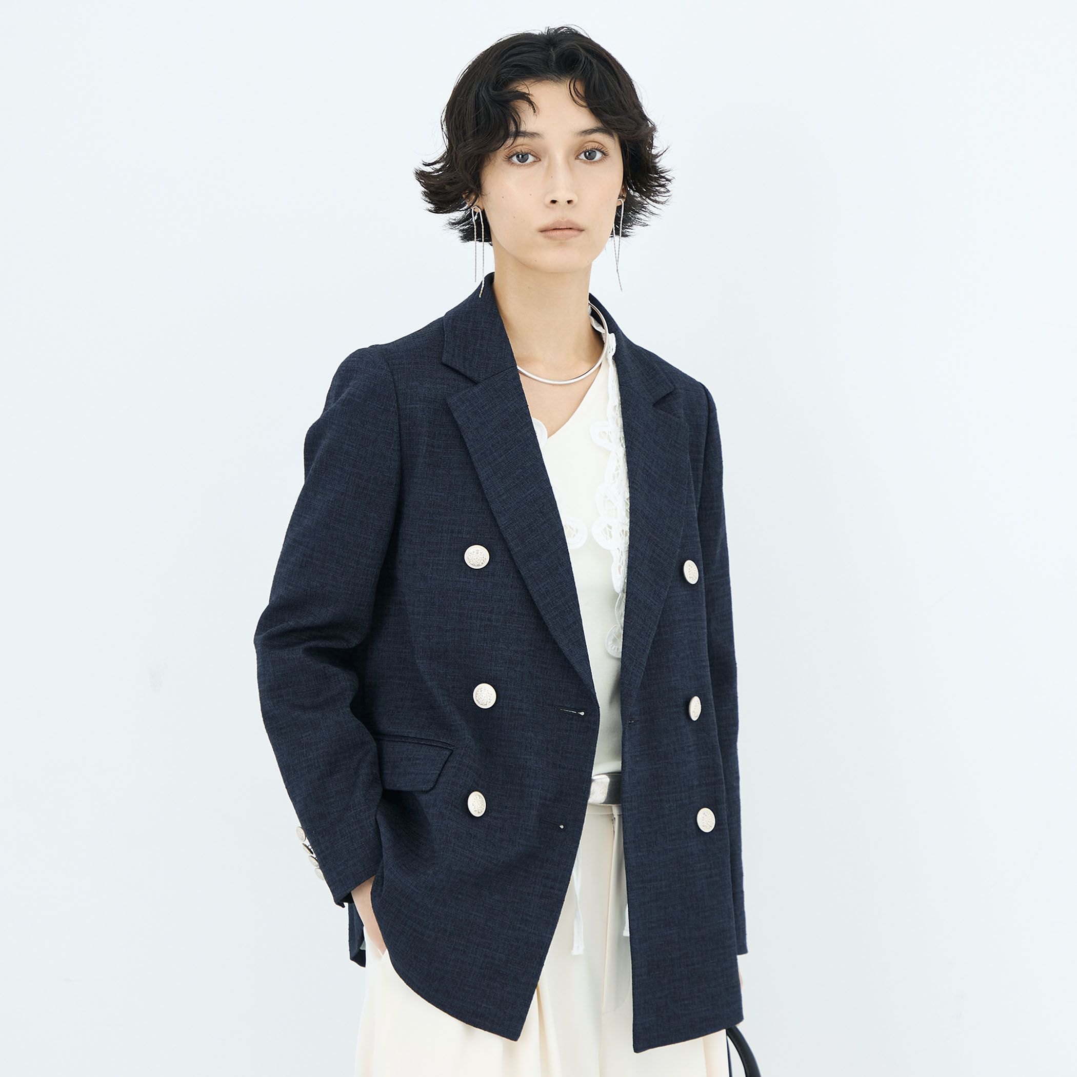 ◇26SS◇NOLLEYS◆Point・太さの異なるスラブ糸で立体的な表面に仕上げた素材を使用したダブルジャケット・綿ポリエステルの染色差で更に陰影を演出・素材に深みのある紺ブレ・ストレッチ性を活かしたサイジングで着心地も快適・裏地や袖口のボタンホールを配色にするなど細部にまで拘ったアイテム・春はアウターとしても頼りになる一枚●お取扱い上のご注意●末永くご愛用頂くために、アテンションタグを必ずご確認の上、着用又はお取り扱い下さい。気になる商品は、お気に入り登録がオススメです!クーポン情報、入荷情報が、通知されるようになります。※店頭及び屋外での撮影画像は、光の当たり具合で色味が違って見える場合があります。商品の色味は、スタジオ撮影の画像をご参照下さい。※商品画像に関しては出来る限り忠実に表示出来るよう努めておりますが、お客様がご利用のモニターの設定及び特性により、実際の商品と比較し色味に若干の誤差が生じる場合があります。※画像の商品はサンプルとなりますので実際の商品と仕様、加工、サイズが若干異なる場合がございます。