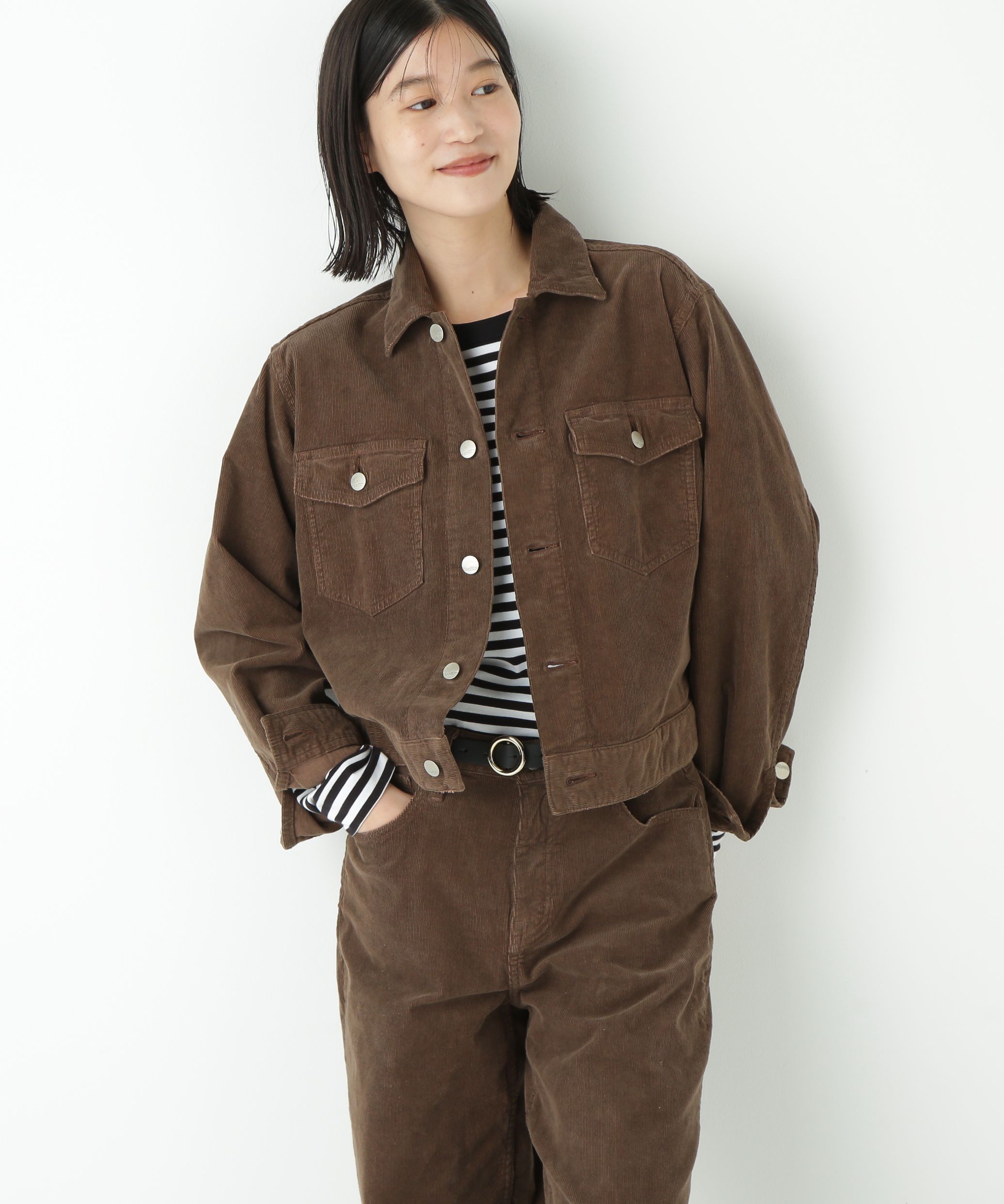 「Healthy Denim × human woman」別注コーデュロイジャケット【デザインのポイント】Healthy Denimの新しいGジャンデザインを別注しました。全体のサイズ感をブランドに合わせて調節しています。【素材のポイント】ストレッチ入りのコーデュロイ生地を使用。比較的太めの糸を使用することでストレッチがしっかりと効いています。【おすすめコーディネート】秋の織物として活躍する1枚です。パンツと同素材同カラーでの展開なので、セットアップでのスタイリングもおすすめです。透け感/なし|裏地/なし|光沢/なし|生地の厚さ/普通|伸縮性/ややあり|シルエット/スタンダード