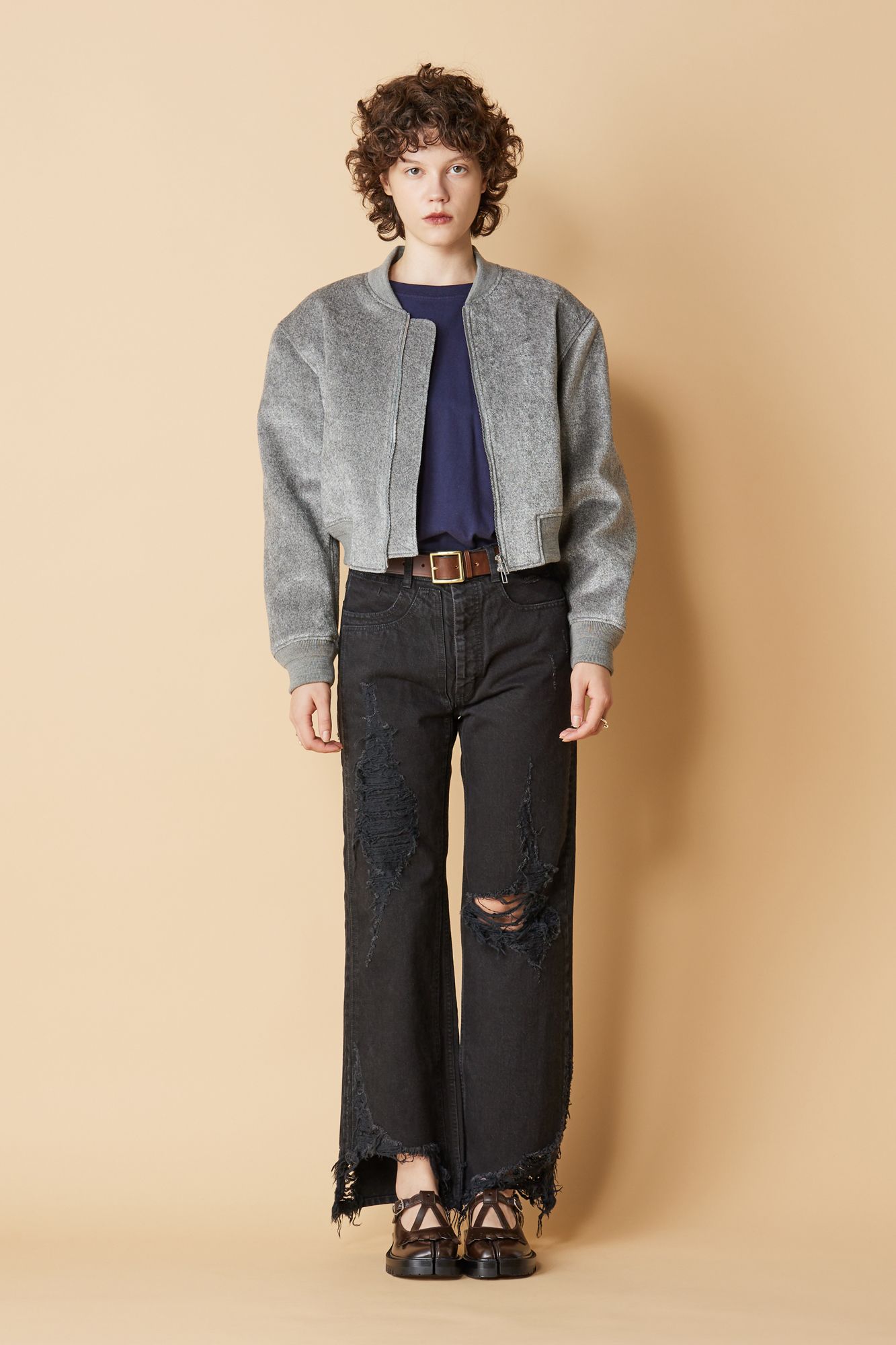 さっと羽織るだけで即サマになる、ボンバージャケット。顔まわりを引き締めるスタンドネックと、構築的なパターンワークで脱シンプルに。なにげないボトムスもモードに活性化し、「KANAKO SAKAI」らしい世界観が現れています。