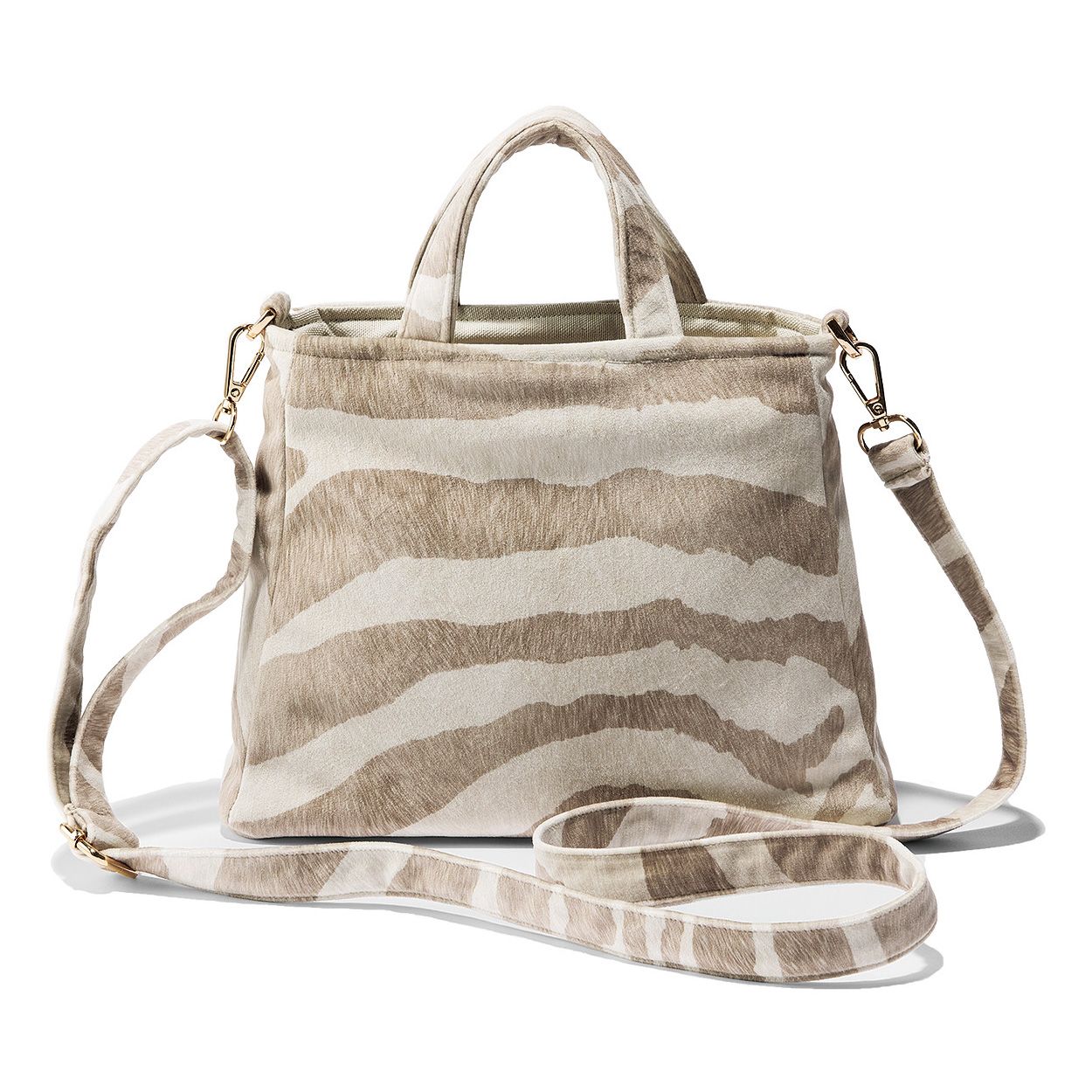 表地はベルベットのような質感がユニークなフェイクファーを採用。間口にファスナーをつけることで中身を見えにくくしたり、取りはずせるストラップはスライド式で調節がしやすかったりと、さりげなく使いやすい工夫も満載。内ポケット付きなので仕分けも便利です。