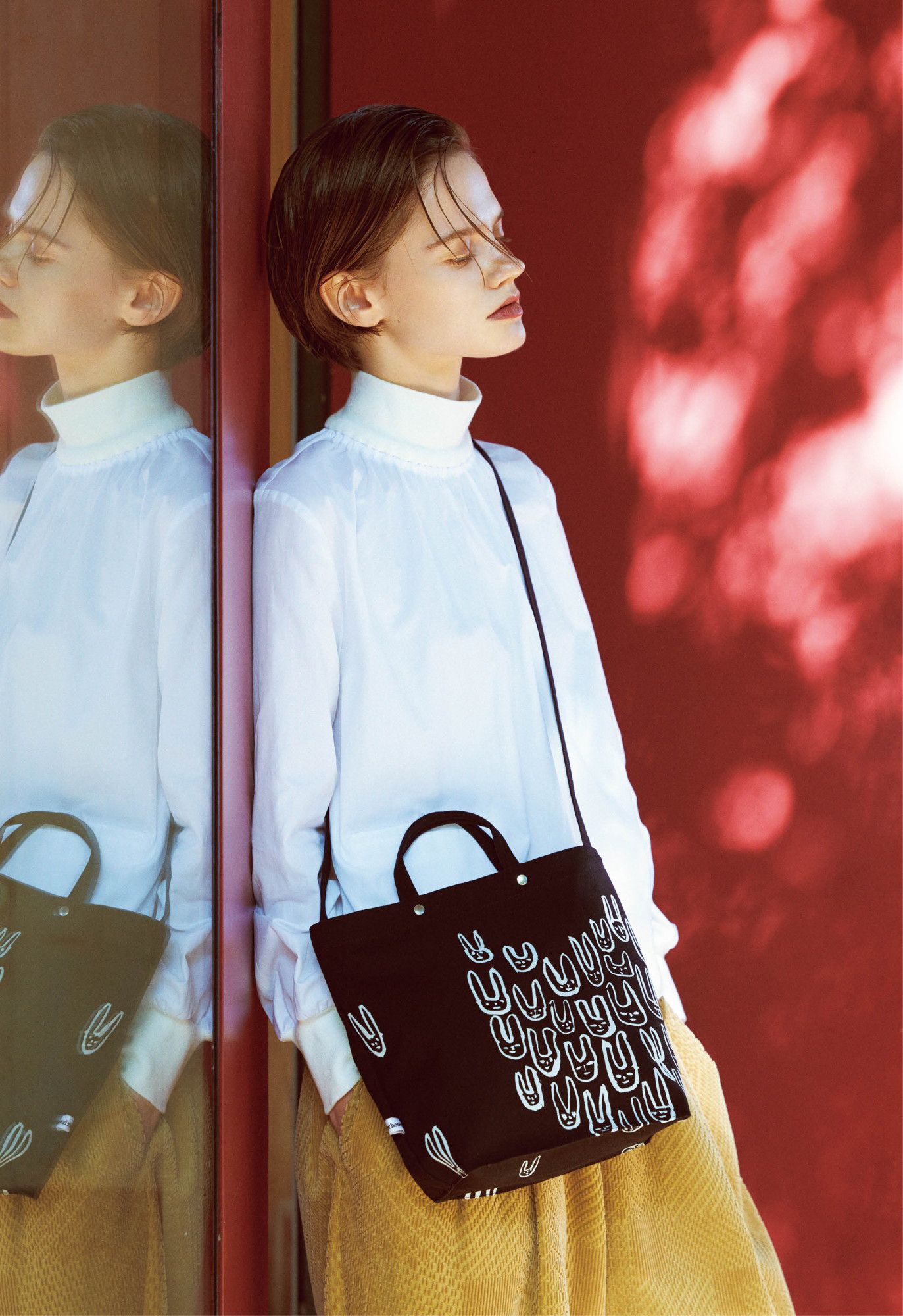 ハンドルのみのシンプルなオリジナルに対し、ショルダーストラップに加え、同時発売のサーモマグがすっぽり入る内ポケットも設置。もちろんスマートフォンやリップなど、小物の収納にも役立つ。テキスタイルは、フランスの伝統菓子、パルミエの形から着想を得たハート形のうさぎ柄」palmier」を復刻! チャーミングなアートワークを際立たせる、立体感のあるフロッキープリントもポイントだ。色はサブバッグとしても合わせやすい、ブラックとグレーの2色で展開する。---mina perhonen(ミナ ペルホネン)---1995年にデザイナーの皆川明により設立されたファッションブランド。オリジナルの図案によるファブリックを作るところから服作りを進める。国内外の生地産地と連携し、素材開発や技術開発にも精力的に取り組む。そのプロセスは独自のストーリー性をもつスケッチや絵から始まり、それをもとに織や刺繍、プリントなど、多様な技術を用いてオリジナルの生地を生み出している。近年は家具やテーブルウェアなどのインテリアプロダクトや、ステーショナリーなど、ファッションの領域を超えたデザインプロダクトも発表。ブランド名は、フィンランド語で「mina」(aは上に点点)は私、「perhonen」は「ちょうちょ」を意味する言葉。蝶の美しい羽のように美しい図案を、軽やかに作っていきたいという願いを込めている。