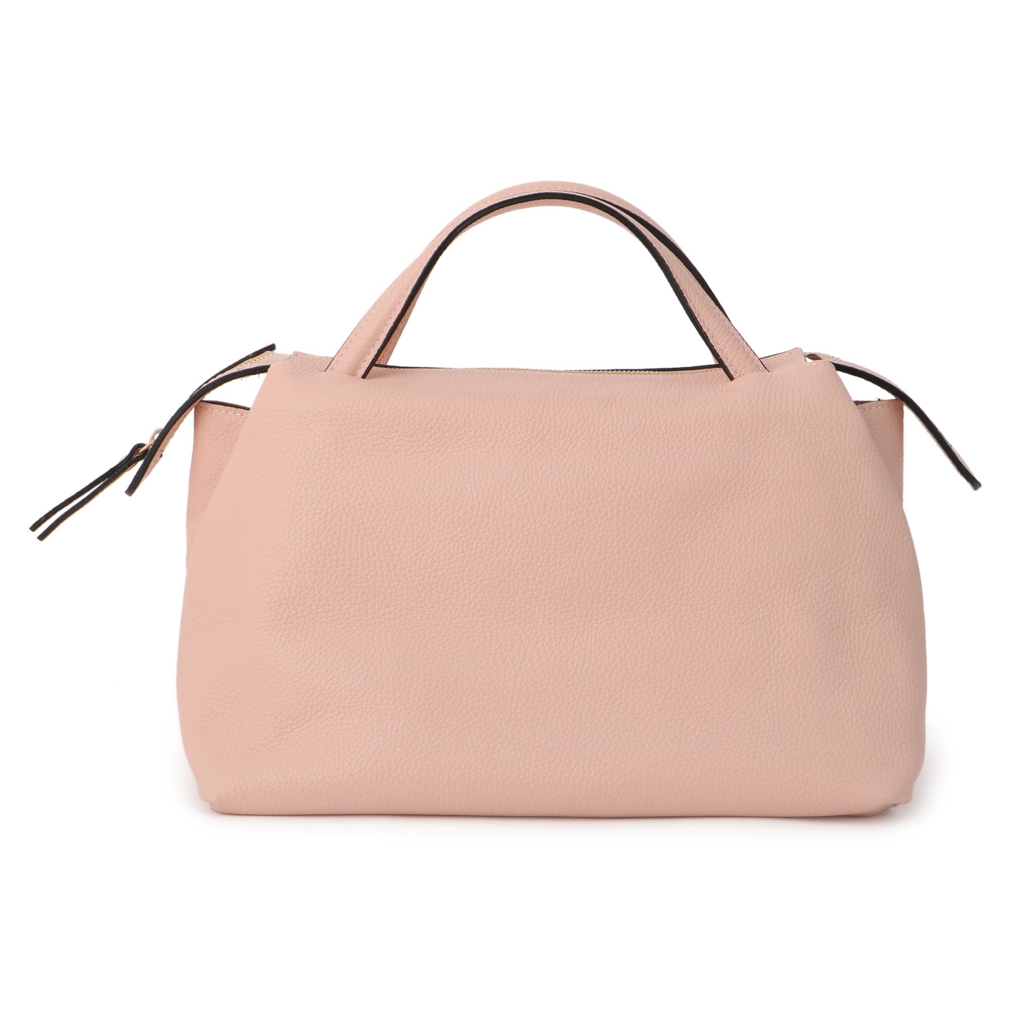 B4サイズも入る使い勝手の良さを持ちつつ、しなやかなレザーのくたっとした風合いのおかげで大きさを感じさせないのが魅力。淡いピンクベージュは、合わせるコーディネートを選ばない絶妙カラーでもありながら、さりげないさし色にもなってくれるから、自然とヘビロテしてしまうはず。このクオリティで2万円台のプライスも驚き!マチがしっかりあるボストンタイプなので、見た目以上に収納力抜群。ロングストラップが付いているので肩がけやクロスボディにアレンジできるのも便利なポイント。ニュアンスのあるピンクベージュだから、クールなカーキ色のセットアップにも合う。プルオーバーにベストを重ね、さらにベルトでウエストマークしたクールな女性像を印象づけたい日にも。上質でしなやかなレザーの素材感とほどよい大きさが、スタイリングの緊張感を緩和して親しみやすいムードに。1泊出張にも対応できるサイズだからワーキングシーンにも活躍。【Marisolスタッフの自腹買い#27】でもご紹介!