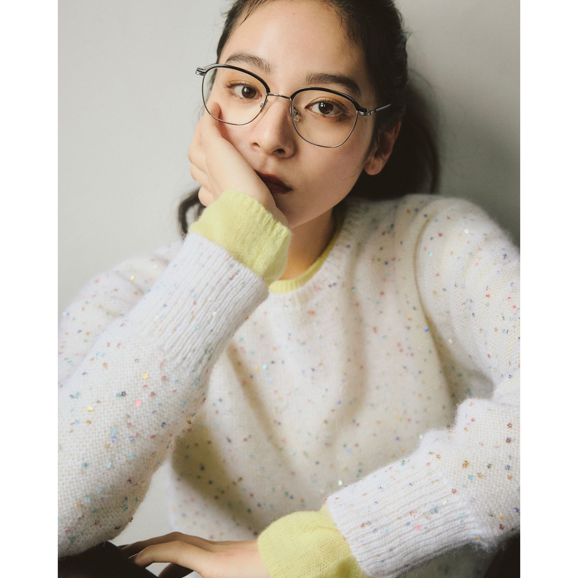 先シーズン瞬く間に完売したあのスパンコールニットが待望のカムバック!ふんわりとしたシルクモヘアに、きらめきをちりばめた一枚は、大人の乙女心をくすぐる存在感。今季は洒落感たっぷりの別注ブルーグレーで登場です。色とりどりのスパンコールはよく見ると花の形に!小さめラメだから大袈裟すぎず、カジュアルスタイルにもマッチ。ニットが甘いぶん、ゆるパンツでハンサムに着るとバランスよく。華やかなラメの輝きに加え、デコルテをきれいに見せるラウンドネックや、すっきり着こなせるシルエットも人気の理由。高級ファンシーヤーンで有名なイタリアSESIA社の糸を使用したシルクモヘアのニットは、ふんわり軽い風合いが魅力。スタイルアップPoint透け感あるニットで華奢見えがかなう■GOOD POINT・ホリデーシーズン映えする名品ニットこれはBRILLのデビュー当時から愛され続け、ハピプラでも発売のたび話題を集めてきた名品ニット。今季はBRILLでの発売がなく、ハピプラだけに特別に登場しました。イタリアメーカー製のふわふわモヘアにちりばめた星くずのようなきらめきは、実はお花型のスパンコール。あえてコンパクトに仕上げたクラシカルな佇まいも、近頃のゆるっとサイズに見慣れた目には新鮮で、思わずキュンとさせるあたりは、さすがニットが得意なBRILL。こんなふうに、かわいいと大人っぽいの間にあるテイストだから、何気ない外出から写真に残したい特別な集まりまで、ホリデーシーズンをオールカバーしてくれます。・選べる2色、どちらも冬に大正解カラーは2色。ホワイトは昨年も人気だった色で、買い逃した方にはうれしい再登場。白すぎないやわらかなトーンが大人の肌によくなじみ、表情を明るく見せてくれます。新色のブルーグレーは、色見本帖からバイヤーが厳選。夜空を思わせるニュアンスカラーは、コーディネートをぐっと面白くしてくれます。どちらも七色にきらめくお花型スパンコールが、多色入りフェイスパウダーのように冬の血色感をカバーしてくれるのもうれしいポイント。仕事納めのささやかな打ち上げや実家への挨拶、気心知れた友人との新年ランチまで、2色それぞれがいつもの装いをさりげなく格上げしてくれます。・ワンツーコーデでも絵になる!華やぎのあるニットは、着るだけで手抜き感をさっと払拭。カジュアルな気分の日は、はき込んだデニムやゆるめのパンツとワンツーコーデするだけで、首元のほどよい肌見せがきき、ラフでも女っぽい装いに仕上がります。きれいめ路線の日には、ふんわり広がるギャザースカートがおすすめ。ニットやシャツを重ね、色や素材のコントラストで見せたり、アウター下からキラッと輝きをのぞかせたりすれば、素敵なレイヤードも簡単。お久しぶりな人やはじめましての人と会うことも多いこの季節、気分を高め、自信も与えてくれるこの一枚を賢く味方につけましょう!
