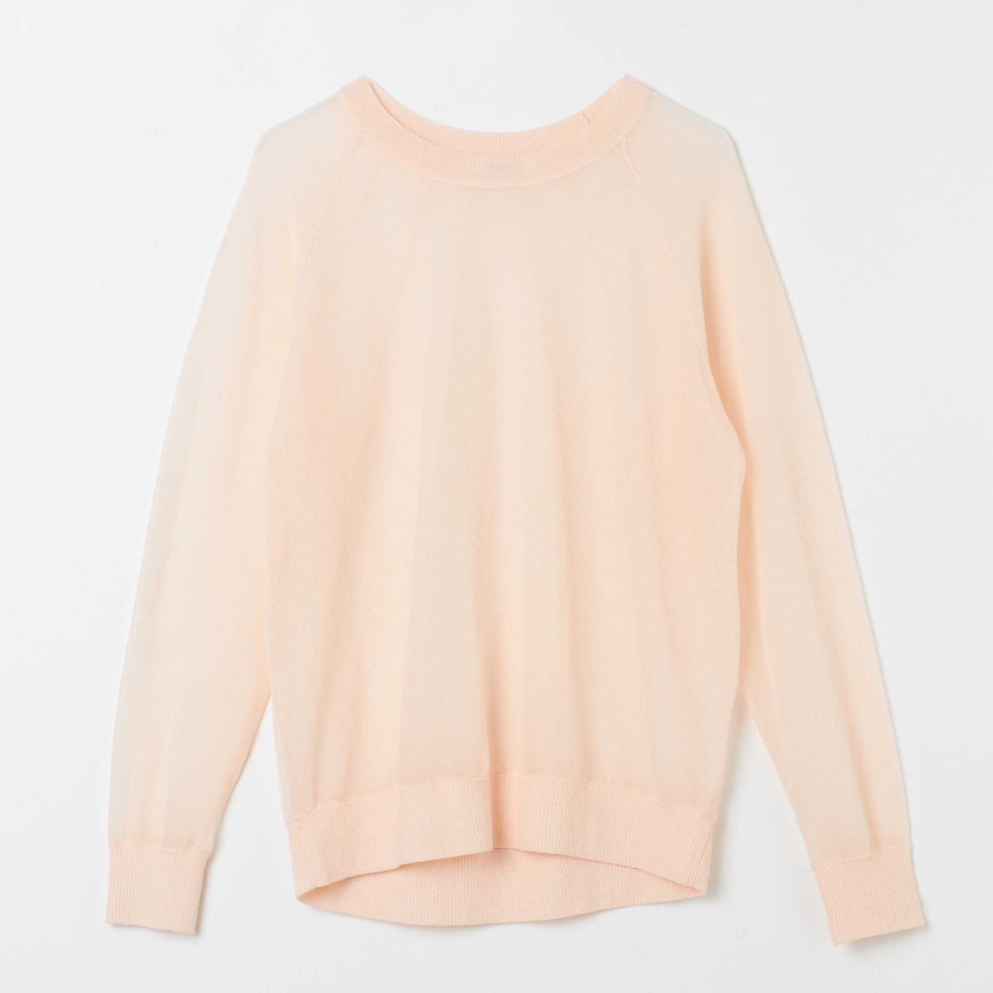 やや細身のシルエット、詰まったネック、シームレスな裾リブが上品な印象に。肩の縫い目を後ろへ少しずらして正面からの見栄えをすっきりと。1枚で着ても気にならないちょうど良い脇の開き具合、肩の肌部分が出すぎない袖の感じでカジュアルになり過ぎず着こなしていただけます。ネック部分、袖口、裾の2×2リブ編みと身頃生地との絶妙なコントラストは高級感があり、ジャケットとのコーディネイトなどきれい目なスタイリングにも相性抜群です。