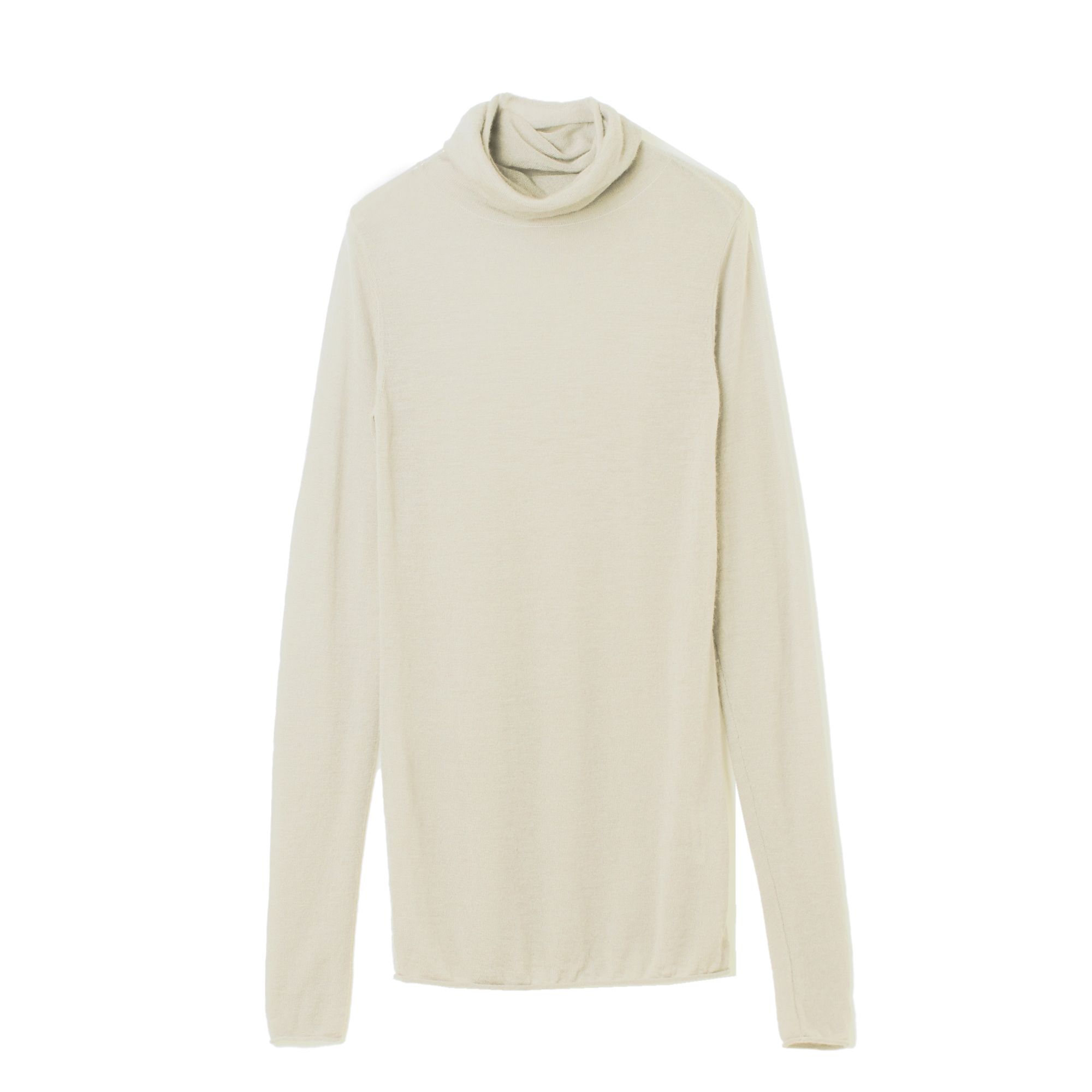 カシミアをブレンドしたふんわりと柔らかなウールが心地よいアイテム。高めのタートルネックがしっかりと包み込み暖か。ボディラインを拾わないゆったりとした前上がりのシルエットがハイウエストボトムとも合わせやすく、飽きのこないデザインはカジュアルやシックなスタイルとも好相性です。