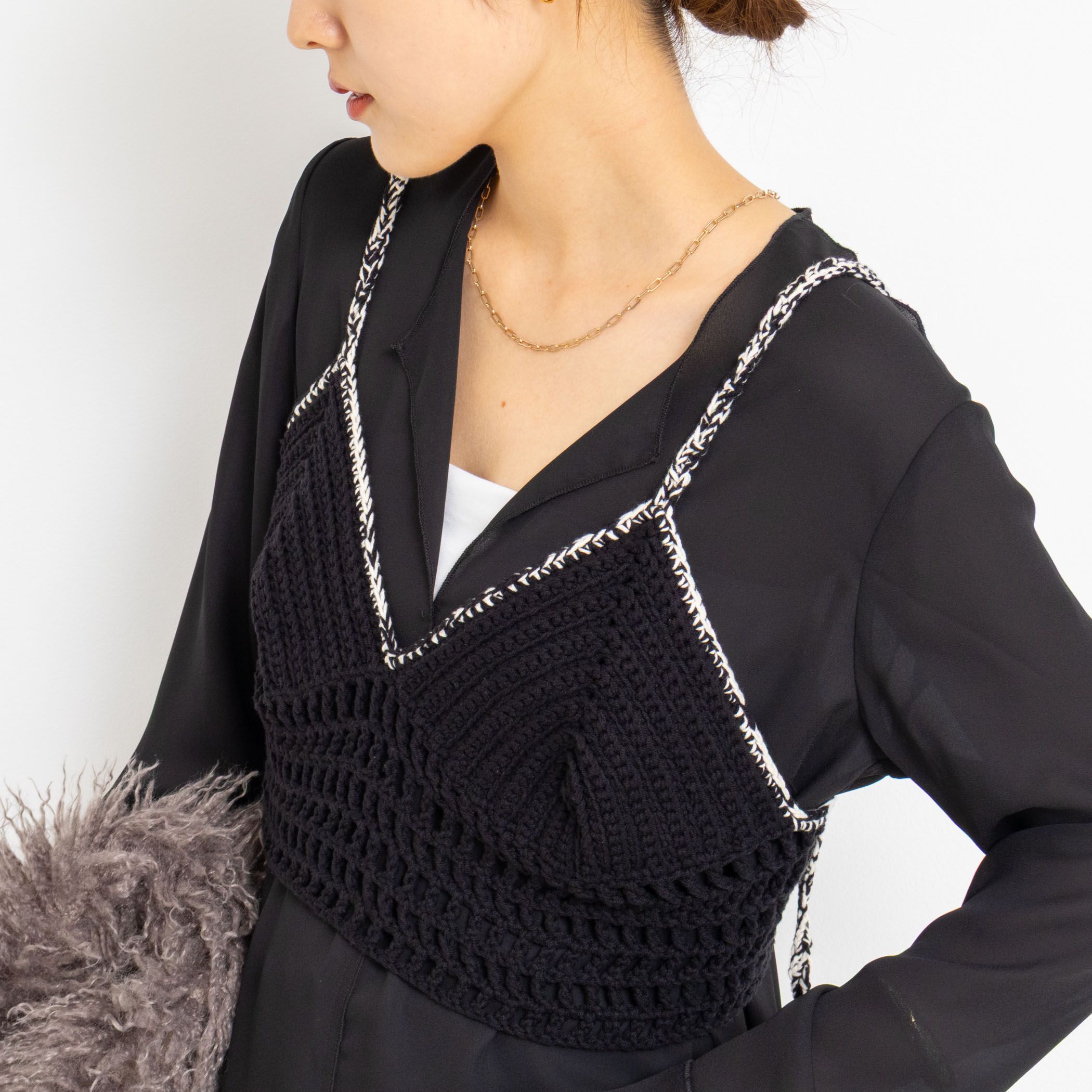 ◇25AW◇Laraaji◆Point・鈎針編みで手編み100%の三角ストール・鈎針で編みやすい綿バルキーアクリル糸を使用・クラフト感が現代にマッチする80年代風やヴィンテージ風なアイテム・ビスチェはアクセサリー感覚で取り入れられて便利◎・シャツやカットソーととのレイヤーコーデがおすすめ・紐の長さは調節可能●お取扱い上のご注意●末永くご愛用頂くために、アテンションタグを必ずご確認の上、着用又はお取り扱い下さい。気になる商品は、お気に入り登録がオススメです!クーポン情報、入荷情報が、通知されるようになります。※手洗い可※店頭及び屋外での撮影画像は、光の当たり具合で色味が違って見える場合があります。商品の色味は、スタジオ撮影の画像をご参照下さい。※商品画像に関しては出来る限り忠実に表示出来るよう努めておりますが、お客様がご利用のモニターの設定及び特性により、実際の商品と比較し色味に若干の誤差が生じる場合があります。※画像の商品はサンプルとなりますので実際の商品と仕様、加工、サイズが若干異なる場合がございます。
