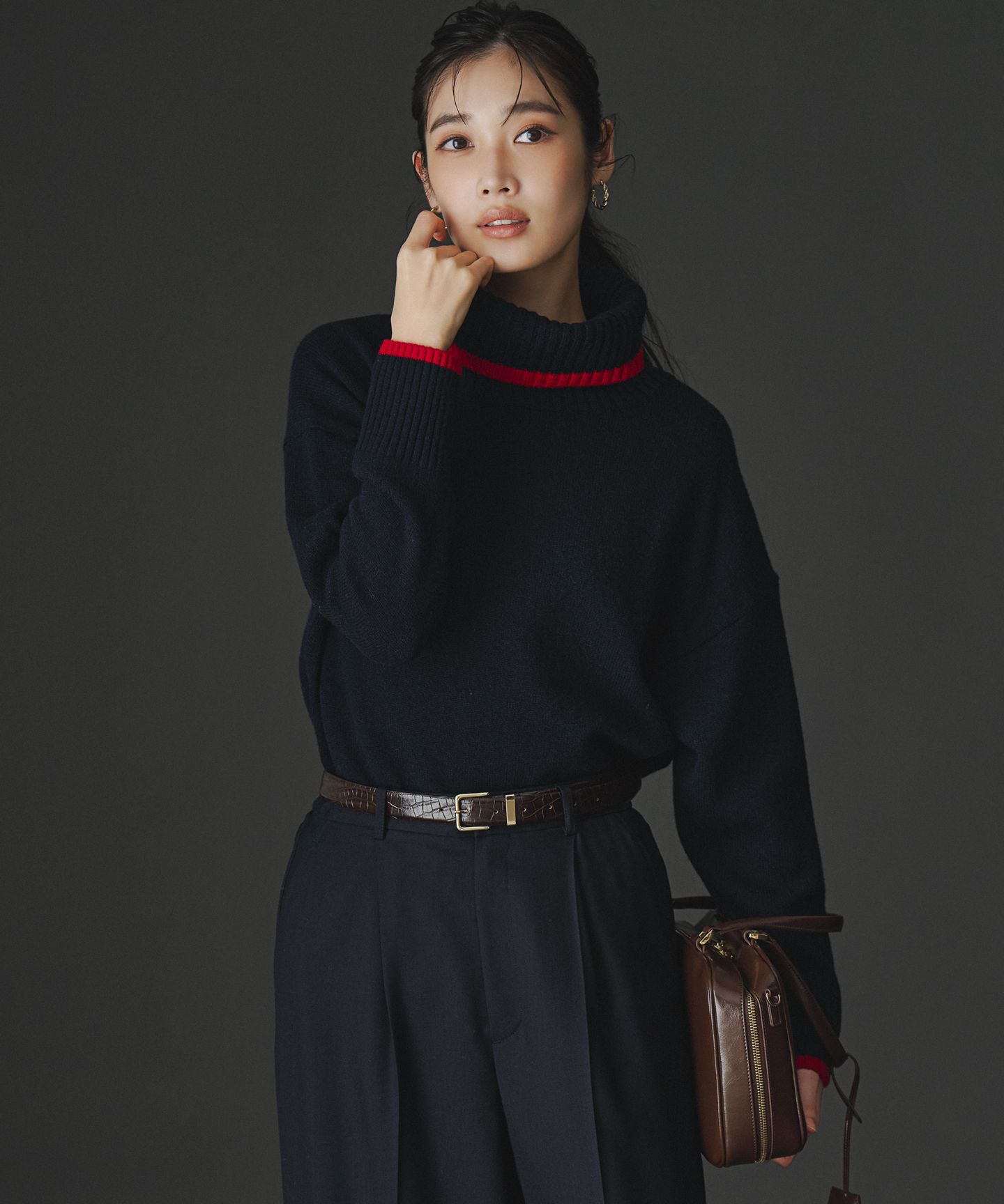 2026 Pre Spring配色が抜け感をプラスするオフタートルニット■デザイン上質なウールカシミヤ素材を使用した、シンプルながらも洗練されたオフタートルニットです。襟と袖口に施された配色が、さりげないアクセントとなり、顔周りや手元を華やかに演出します。 やや体から離れるオフボディシルエットは、気になるラインを拾いにくく、リラックス感がありながらもすっきりとした印象に。細身のパンツと合わせてシャープに、Iラインスカートと合わせてエレガントにと、様々なボトムスと相性抜群です。両脇に入ったスリットが、デザインに軽やかさと動きをプラスし、こなれた雰囲気を醸し出します。 カラーは、知的な印象のグレー(#003)に遊び心のあるイエローの配色、上品で柔らかなベージュ(#033)に印象を引き締めるブラックの配色、深みのあるネイビー(#075)に華やかなレッドの配色をあしらった3色展開です。■素材オーストラリア産のウールとカシミヤを撚り合わせることで、カジュアルすぎず、すっきりとした上品な風合いに仕上げました。ふっくらとした適度な厚みがありながらも、毛羽立ちを抑えているため、大人カジュアルにぴったりの洗練された素材感です。軽くて暖かく、肌触りの良いカシミヤ混の素材が、快適な着心地を叶えます。※画像はサンプルを使用している為、実際にお届けする商品と仕様が異なる場合がございます。