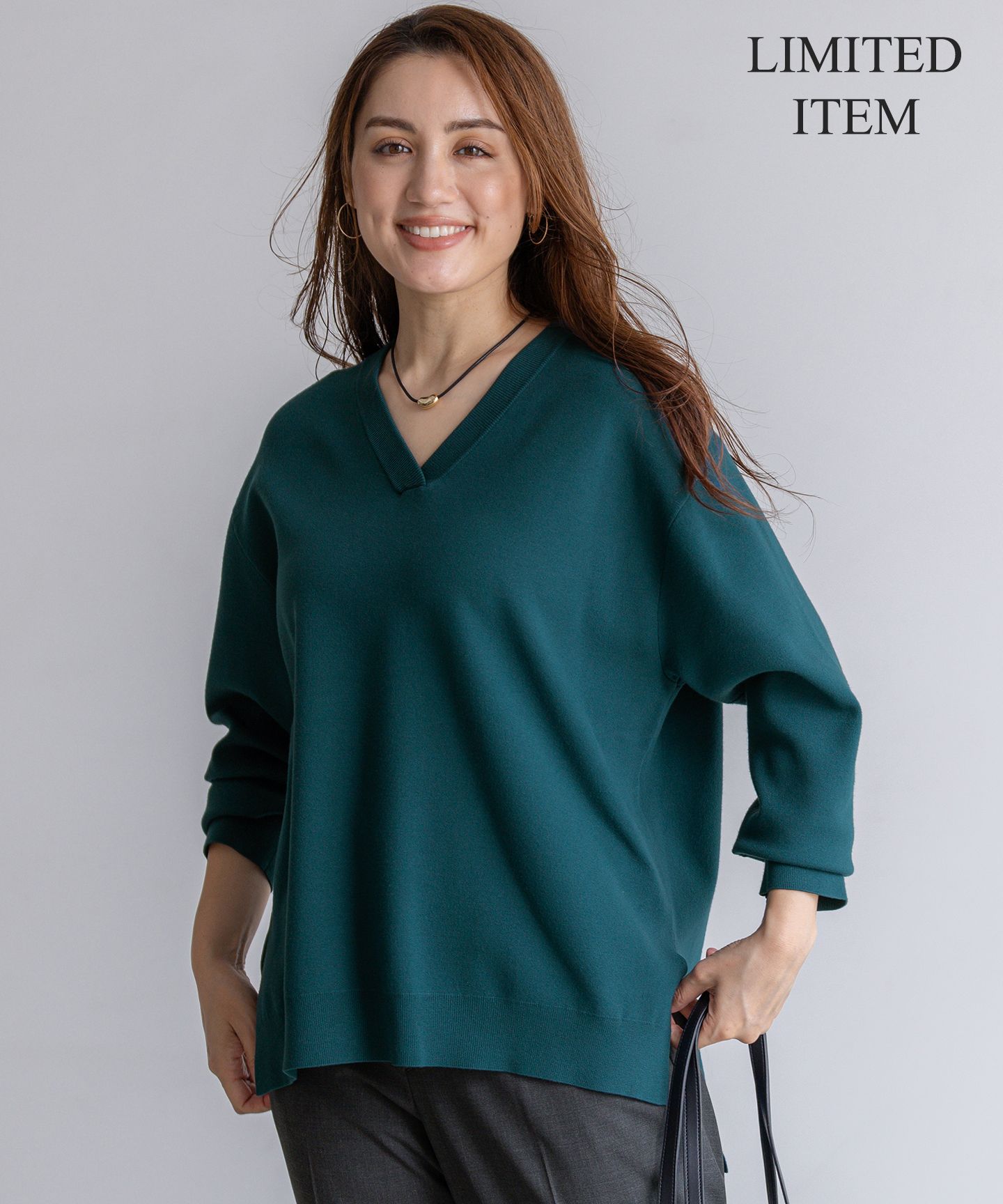 2025 Autumn & Winter【大きいサイズ限定】ほど良いゆったり感が体型カバーも叶える!着回し力抜群ニット■デザインスムース編みを使用したVネックのプルオーバーニットです。単品でのご着用はもちろん、同素材のパンツと合わせたセットアップスタイルもおすすめです。 ややオフボディのシルエットは、体型を拾いにくく、リラックス感のある着心地を叶えます。前後差のあるヘムラインと両脇に入ったスリットがデザインのポイントで、インナーにラウンドヘムのシャツやカットソーをレイヤードしたスタイルもきれいにまとまります。カラーは、洗練された印象のグレー(#004)と印象引き締まるブラック(#005)の2色展開です。■素材ストレッチ糸を芯に、ソフトでコシのある極細のビスコース糸を巻き付けた、快適な着心地のコンフォート素材を使用しています。非常に軽量でありながら、編み目がきれいに締まっており、上品な目面が特徴です。オーストリアのサステナビリティ企業LENZING社のビスコースを採用しており、環境に配慮した素材です。滑らかな風合いと優れた伸縮性により、シーズンレスで快適にご着用いただけます。▼同シリーズ【Lサイズ限定】ヴィスコースストレッチ ニット パーカー (品番:KRWWGW6844)※画像はサンプルを使用している為、実際にお届けする商品と仕様が異なる場合がございます。