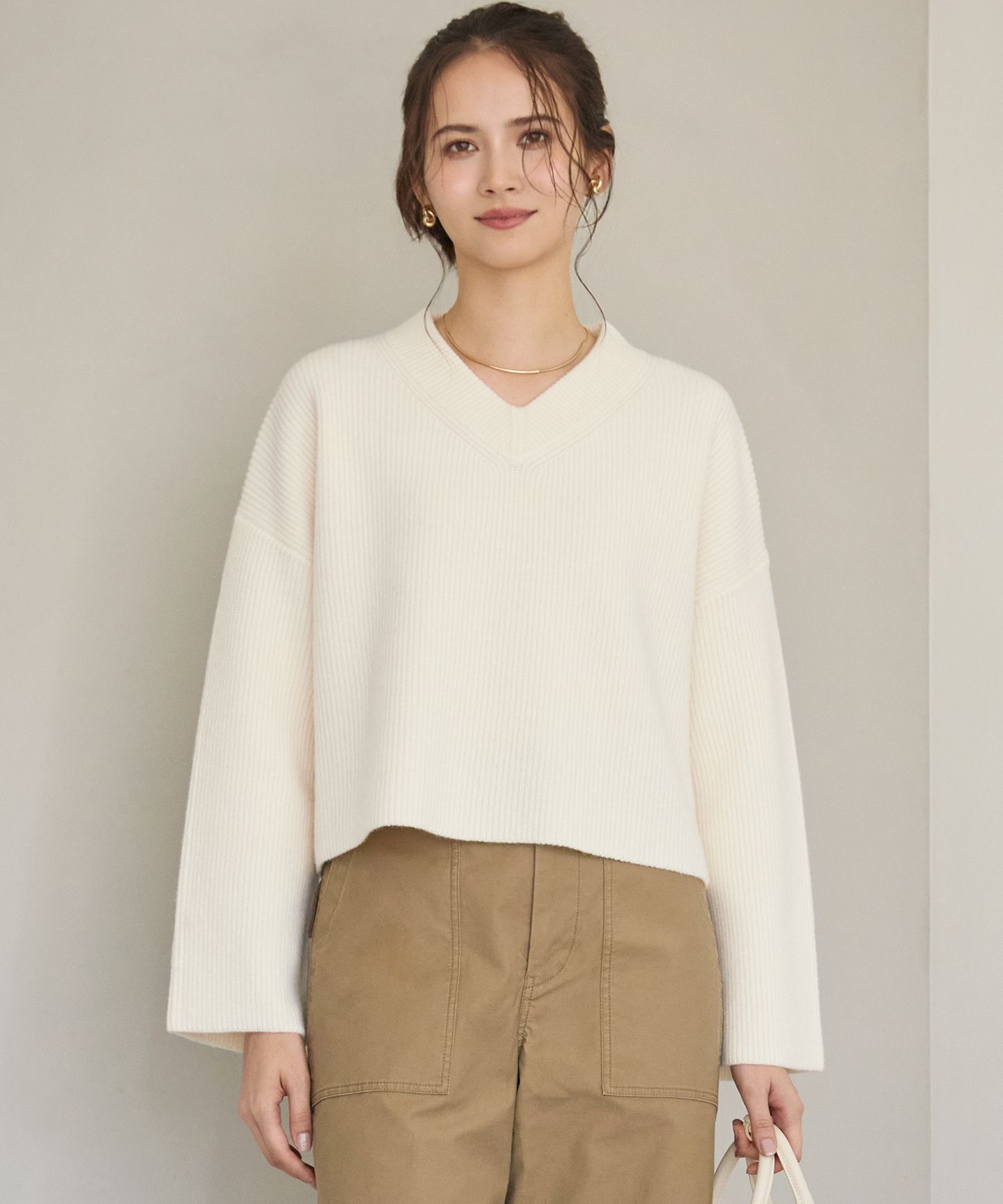 2025 Pre Springベーシックで飽きのこない、着心地抜群ニット■デザインサンジングにこだわったミニマルなVプルオーバー。ボディラインを拾わないほど良い厚みの天竺ベースで編み立てました。スマートな印象のスリーブにコンパクトなVネックラインがシックな大人スタイリングと好相性。シンプルなスタイリングはもちろん、ボリュームのあるボトムスとも相性抜群です。カラーは、清潔感のあるホワイト(#001)、ニュアンスをプラスするライトグレー(#003)、印象を引き締めるブラック(#005)、コーデが華やぐピンク(#012)、やさしい雰囲気のベージュ(#033)、爽やかなスカイブルー(#072)の6色展開です。■素材オーストラリア産の紡毛とカシミヤ混のセミ梳毛を撚糸することで、カジュアルすぎずすっきりとした風合いに仕上げた上質素材です。適度に膨らみ、バルキー性が有りながら毛羽立ち過ぎない大人カジュアルに適した素材感が魅力。【ウールマーク認証について】ウールマーク認証とは、厳しい品質基準を満たしたウール製品を証明するマークです。第三者の認定検査機関を通じて、ウール混率・耐久性・洗濯試験などを検査し、ザ・ウールマーク・カンパニーが設定する品質基準を満たした製品にのみ付けられるマークです。 【メリノウールについて】主にオーストラリアで飼育されているメリノ種という?の?で、他品種の?より細く滑らかなウール繊維が特徴。??は発熱?や保温性、吸放湿性などに優れており、機能性と上質でしなやかな肌触りを両?しています。※画像はサンプルを使用している為、実際にお届けする商品と仕様が異なる場合がございます。