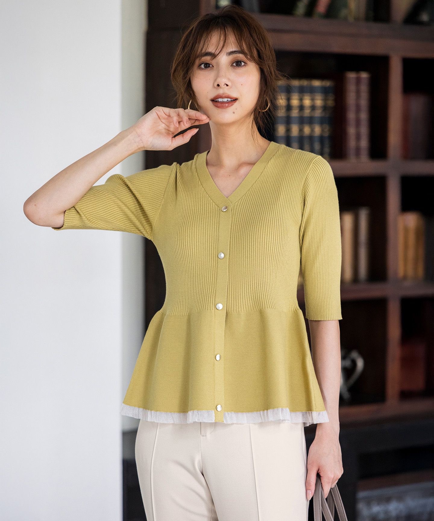 立体感フレアで美シルエットを叶えるペプラムニット■デザイン・ペプラムシルエットがエレガントな印象を与えるニットプルオーバー・フロントのゴールドボタンと、裾からのぞくシアーなフリルが華やかなポイント・立体感のあるペプラムのフレアが腰回りをすっきりカバー・開きすぎていない上品な襟元と、リブでもぴったりしすぎない程よいフォルムで着心地も◎■仕様・シンプルなプルオーバータイプ■素材・伸びの良いレーヨンナイロン素材で、動きやすく快適な着心地・細めのリブ編みで、程よい厚みと上品な質感■機能性・マシンウォッシャブルこちらの商品はサイズバリエーションがございます。Rレギュラーサイズ(KRWPGA0980) S小さいサイズ(KRWQGA0980) L大きいサイズ(KRWKGA0980)※商品画像はサンプルを使用しているため、色味やサイズ等の仕様に変更がある場合がございますので、予めご了承ください。※屋外での撮影画像は、光の加減で色味が違って見える場合がございます。商品の色味はスタジオ撮影の画像をご参照ください。#anySiS #エニシス #エニィシス #エニスィス #レディース #ペプラムニット #シアーフリル #ゴールドボタン #エレガントコーデ #フェミニン #レディスタイル #きれいめ #フェミニン #通勤 #オフィスカジュアル #オフィススタイル #お仕事 #お仕事コーデ #洗える #ウォッシャブル