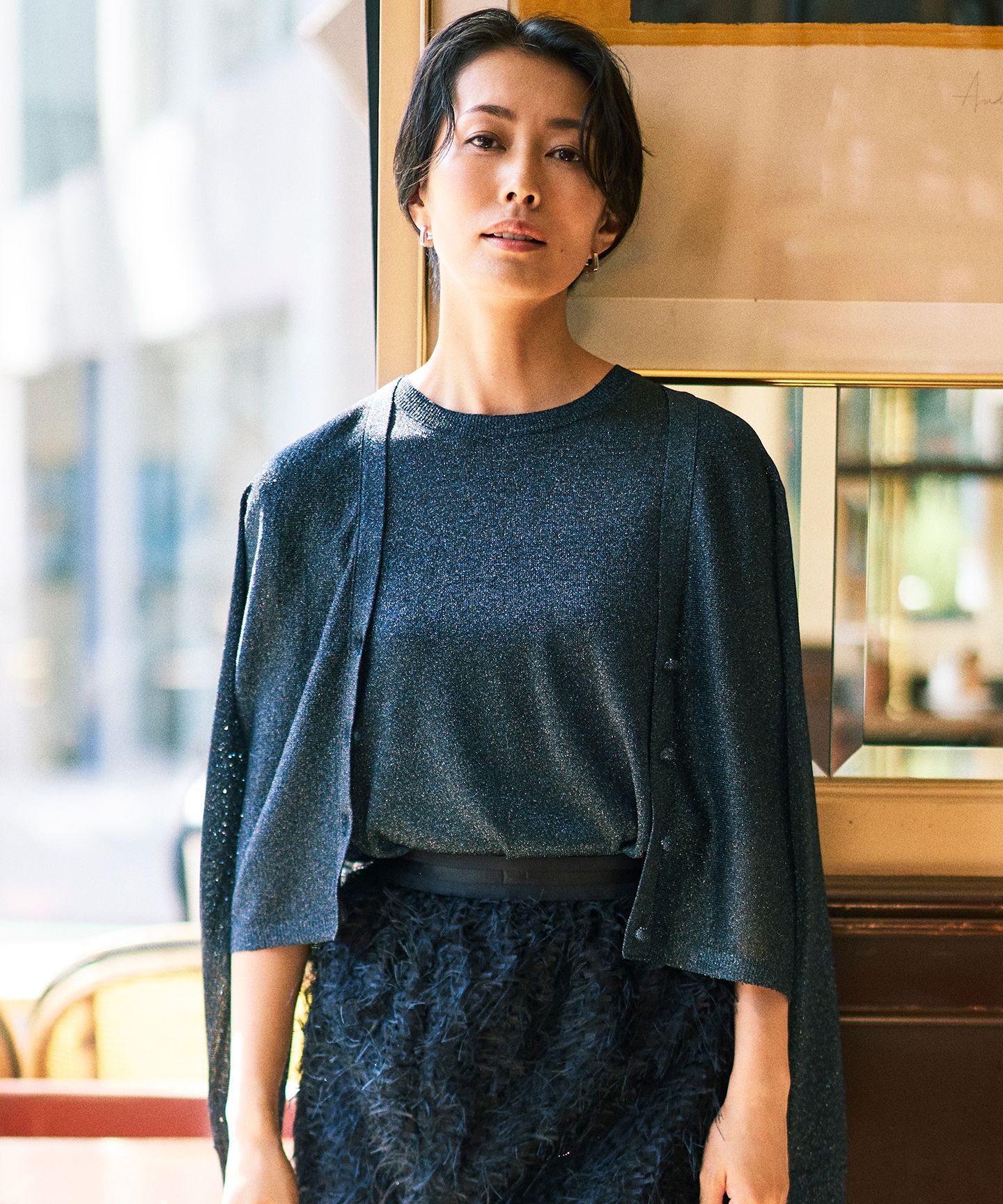 ファンシーで表情のある糸と繊細なラメ糸が目を惹くニット■デザイン糸のユニークさを前面に打ち出したシンプルなデザインのニットです。スカートやワイドボトムと相性の良いコンパクトなシルエットに仕上げました。袖ぐり周りなどは程よく緩さをつけることで、抜け感のあるデザインになっています。■素材2色のループ糸とモール調のラメ糸を撚糸することでオリジナリティーがあり、ファンシーで迫力のある表情が特徴です。コシとストレッチ性があるため、春に適した程よい厚みのあるミドルゲージ素材です。※画像はサンプルを使用している為、実際にお届けする商品と仕様、加工、サイズが若干異なる場合がございます。予めご了承ください。※撮影環境の都合上、実際の商品と色味が異なって見える場合がございます。