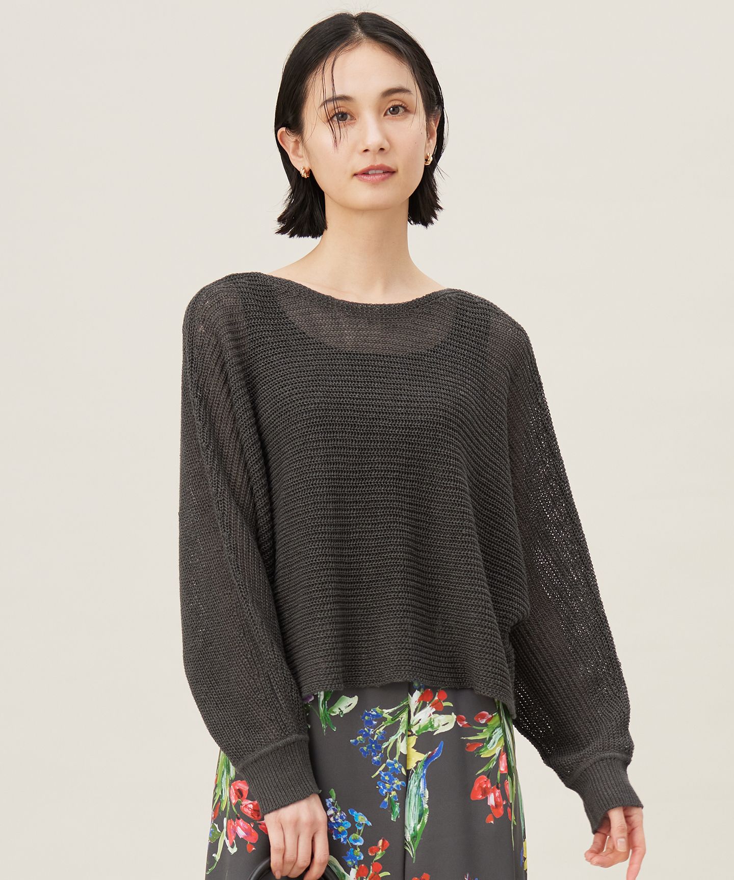 メッシュのような透け感が今年らしいドルマンスリーブニット■デザインメッシュのような透け感がトレンド感のあるニットです。タンクトップ等とのレイヤードを意識したざっくりとしたポンチョ型のシルエットも特徴です。後ろの首元に付けたさり気ないプレートもアクセントになります。ドルマンスリーブのゆったりとしたシルエットでボトムを選ばず合わせやすいニットです。■素材リネンの中でも最上級のクオリティであるフレンチリネンの原料を使用しています。フレンチリネンは、美しい水と気候に恵まれたフランス北部で栽培された亜麻が原料になっています。繊維の中が空洞になっているため、冬は暖かい空気を逃がしにくく、夏は通気性をよくする特徴があります。清涼感がありますが、夏だけでなく1年中着て頂ける素材で、やや光沢のある風合いが特徴です。■同素材アイテムボートネックニット(KRWMCM0352)フーディニット(KRWMGM0353)※画像はサンプルを使用している為、実際にお届けする商品と仕様、加工、サイズが若干異なる場合がございます。予めご了承ください。※撮影環境の都合上、実際の商品と色味が異なって見える場合がございます。