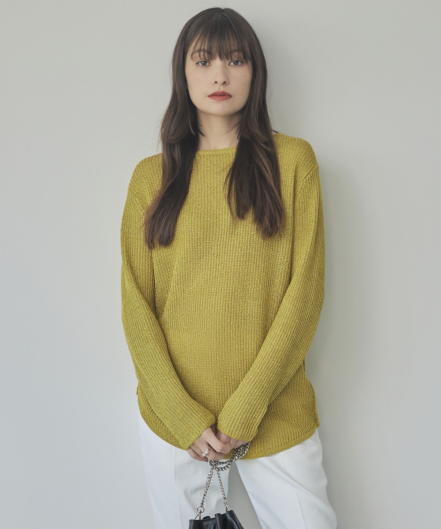 2024SS暑い時期でも涼しく着られる!どんなボトムとも好相性な万能ニットプルオーバー■デザイン上品な凹凸目が高級感溢れるミドルゲージの畦編みニット。素材の持つツヤと落ち感で、カジュアルになりすぎず洗練された印象に。ややゆったりシルエットながら、細見えする様にサイジングに拘りました。シャツテールの様なヘムラインとバックベントで軽やかな印象に。さりげない編地切替えも拘りポイントです。ヒップが隠れるレングスで、どんなボトムとも相性良く着ていただけます。■素材吸放湿性、通気性、爽やかな清涼感を併せ持った美濃和紙と、シルクの様な柔らかさと上品で艶やかな光沢を特徴に持つアセテートをブレンドしたハイブリッドな素材を使用しています。しなやかなコシと落ち感、ひんやりと優しい肌触りと、それぞれの持つ特徴が最大限に引き出された独特な素材感になっています。さらりと肌離れもしやすい素材感なので、暑さを感じる季節でも爽やかに快適に着ていただけます。※商品の取り扱い方法につきましては、タグ等に記載されている「取り扱い上の注意」「洗濯表示」をご確認ください。※採寸情報はサンプル商品のデータです。実際の商品と仕様が異なる場合がございます。※商品画像はサンプルを使用しているため、実際にお届けする商品と色味やサイズなどの仕様に変更がある場合がございます。予めご了承ください。