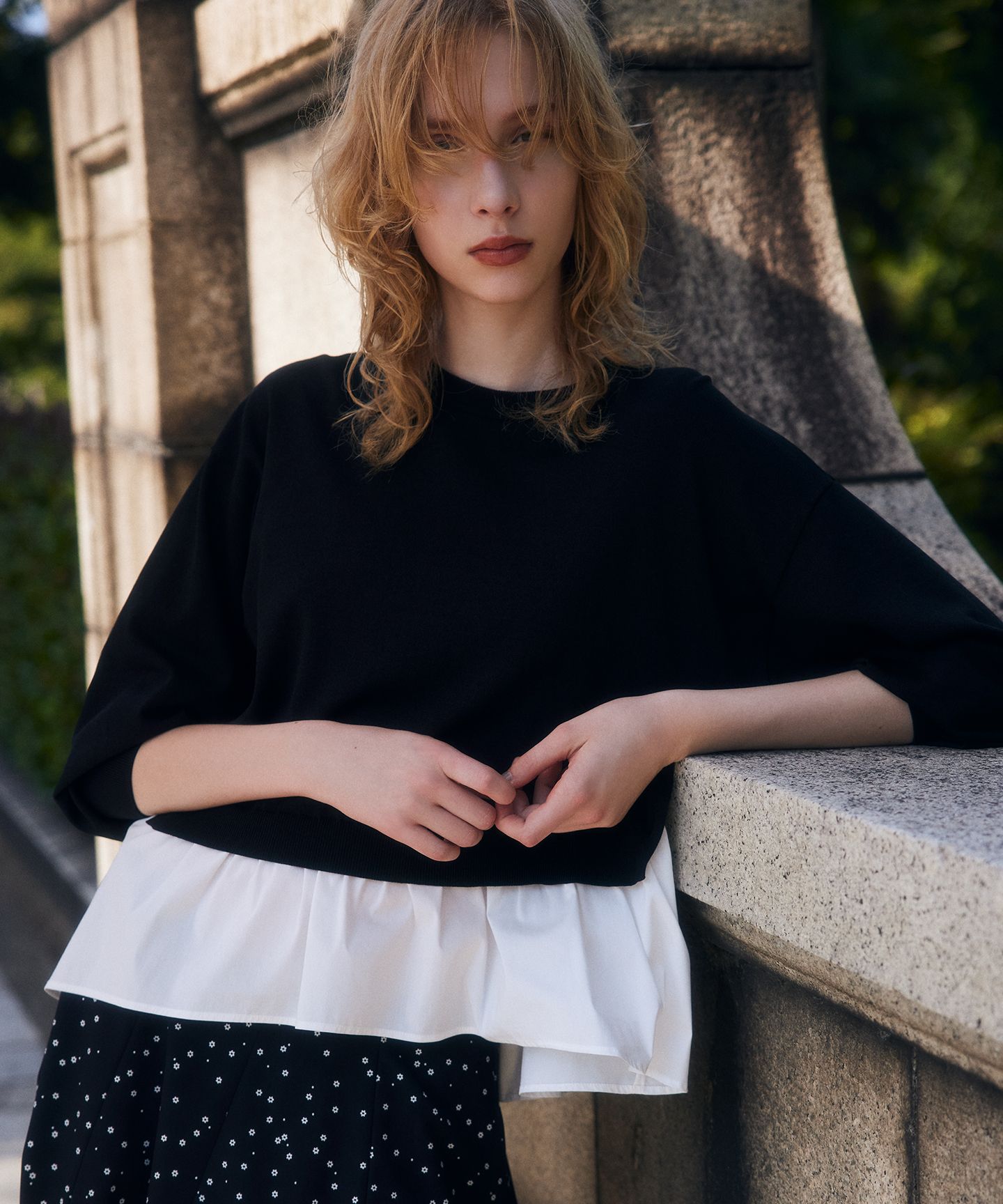シャツコンビデザインで1枚で着映える、レイヤード風ニット■デザイン・脇の深めのスリットからボリュームを出したシャツ生地がポイント。レイヤード風デザインが1枚で着映えるニットプルオーバー。・身体のラインを拾い過ぎない適度なサイズ感が体型を選ばす、身体から離れているのでまだ暑い初秋でも即着可能です。・7分袖の袖口は増し目で角度をつけてボリュームを出してニュアンスをプラス、袖口はリブ仕様なのでブラウジングもできます。・裾のシャツ地は全色オフホワイトを使用した配色使いです。■素材・伸縮性のあるレーヨンナイロンの糸を強撚し上品な光沢とサラッとした肌触りになっています。・極細のストレッチ糸を加えてきれいな編目と着心地の良いキックバックのあるニットです。・別布は軽くソフトなタイプライター素材で、綿ナイロンの素材なのでナチュラルな質感とイージーケアが特徴です。■機能・UVケア・接触冷感【スタッフコメント】▼身長158cm|着用サイズ2 (通常着用サイズM)レイヤード風なのでこれ1枚で決まるプルオーバーです。身体のラインを拾い過ぎないサイズ感で体型を気にせず着用いただけます。身体から離れたシルエットでまだ暑い初秋でも即着可能な優れもの!============================洗濯方法:手洗い可裏地:なし伸縮性:あり透け感:なし============================【注意事項】※撮影時の照明の関係により、色味が若干異なって見える場合がございます。商品の色味はハンガー吊り画像をご参照ください。※画像はサンプルを使用しているため、実際にお届けする商品と色味やサイズ等の仕様に変更がある場合がございます。▼気になるアイテムは『お気に入り登録』がおすすめ▼お好きなカラー&サイズを選んで?マークをクリック!再入荷通知や、ラスト1点の通知、セールの通知も受け取ることができます。