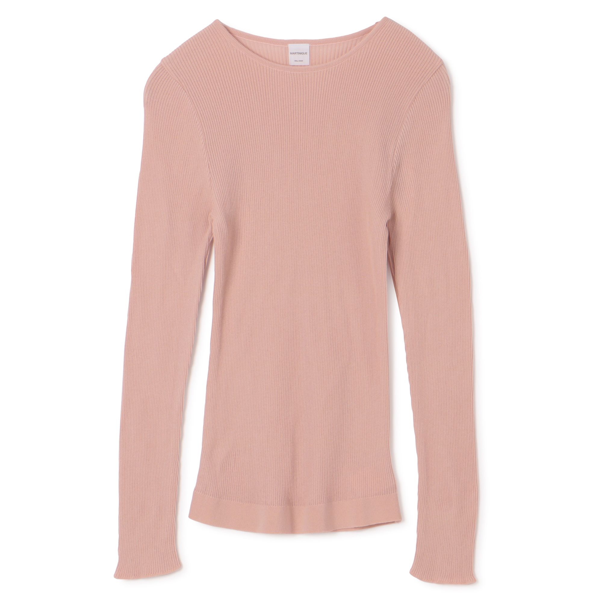 ≪素材・着心地≫定番の綿シルクのニットソーインナー。洗ってもヘタレにくく、ずっと綺麗な状態で着用していただけます。≪おすすめの着こなし≫今年のさし色はピンクと印象的なネイビーブルー。インナーとしてだけでなく、見せて着ても素敵です。透け感:なし伸縮性:あり光沢感:なし裏地:なし生地の厚さ:薄い