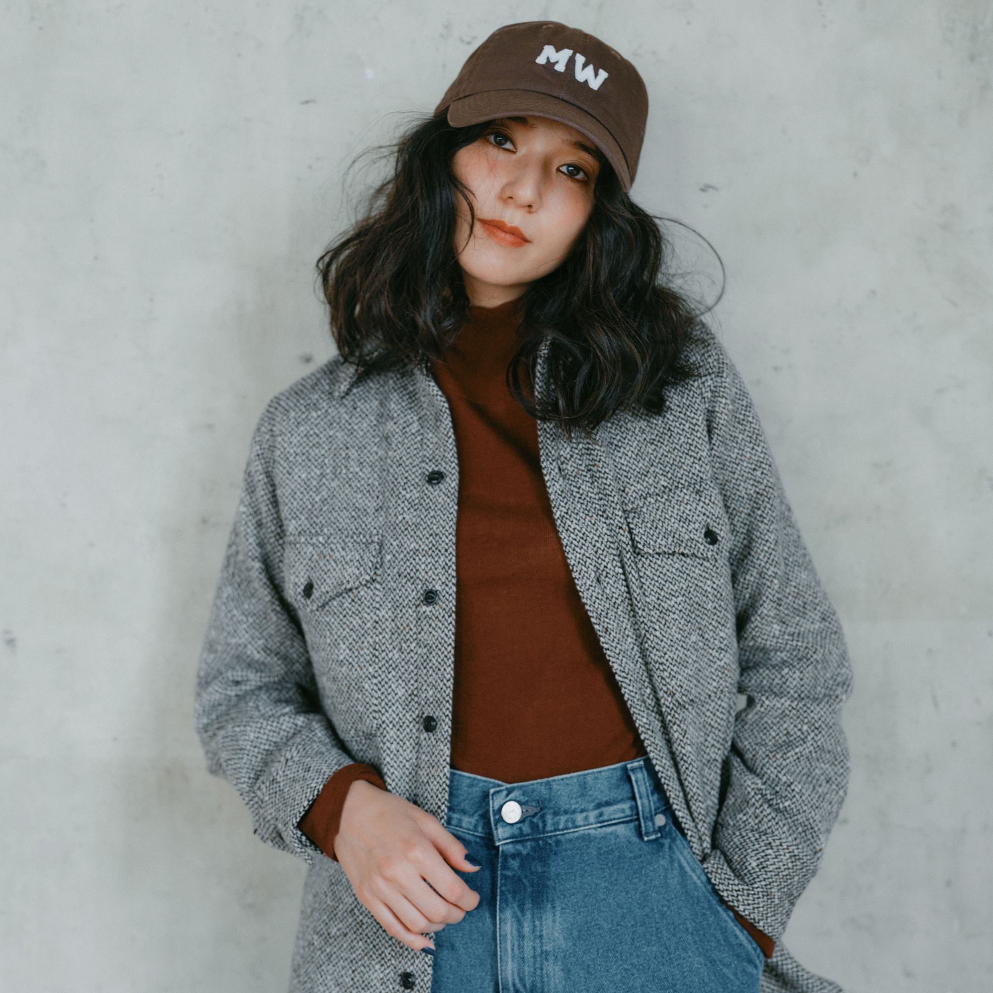 未防縮のウール糸を使用しており、完成品を縮絨する際に洗いの時間を長くする事で糸が絡み合いフェルト化させています。その行程により通常の編地より厚みがでてフェルト生地の様な風合いになります。ただ極端に厚みがでない様に元の編地であらかじめ調整しており、色々な商品との組み合わせが出来る様な設定にしています。ボディのデザインは身幅、肩幅を広く設定し抜け感のある仕様です。